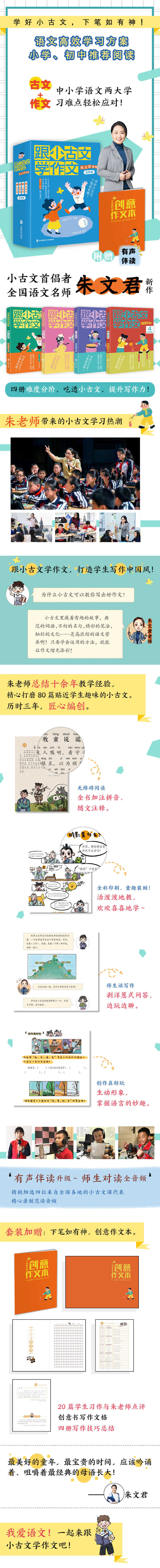 Con la composición de la literatura antigua de Xiao, un conjunto completo de 4 volúmenes, estudiantes de la escuela primaria Zhu Wenjun, grado uno, dos, tres, cuatro, cinco y seis, primer y segundo volumen, notas