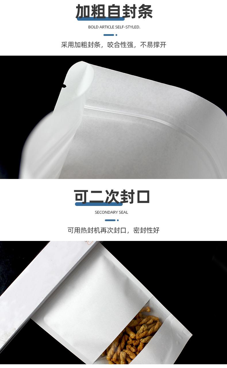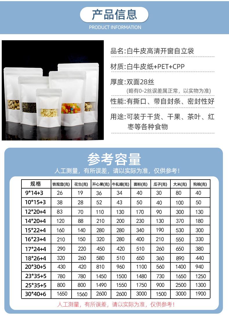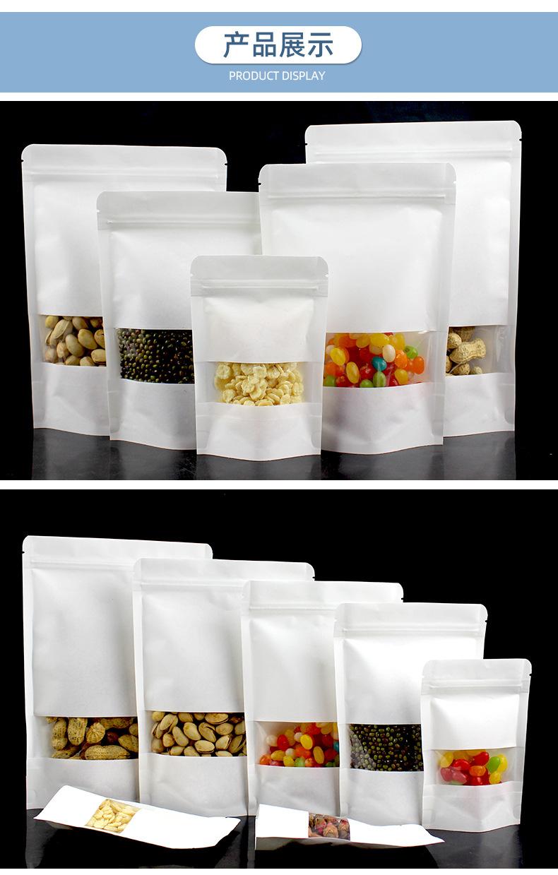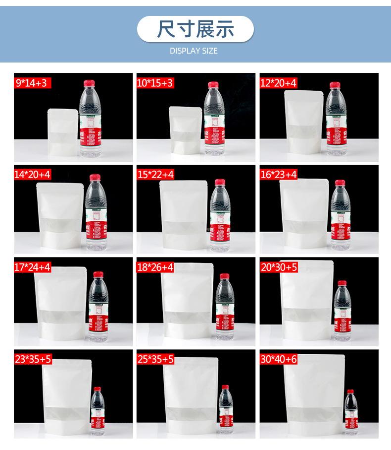 White kraft paper high-definition window stand-up bag complete set of samples; white kraft paper/PET/CPP
