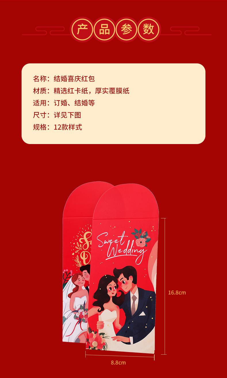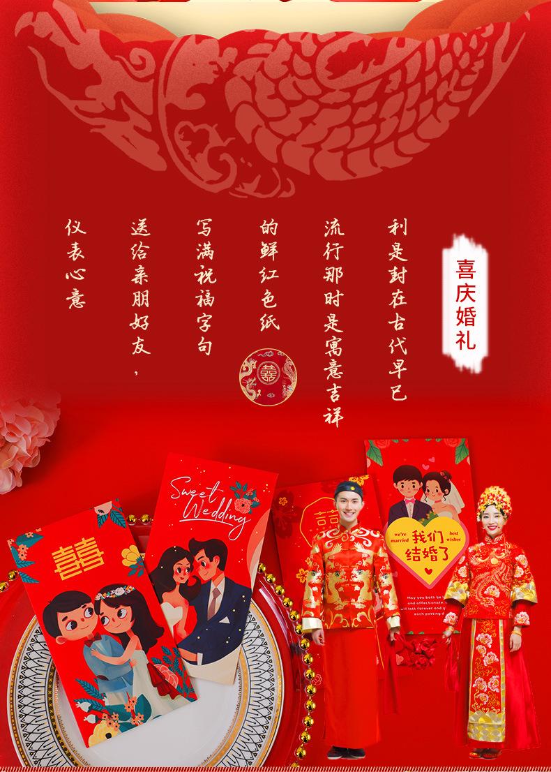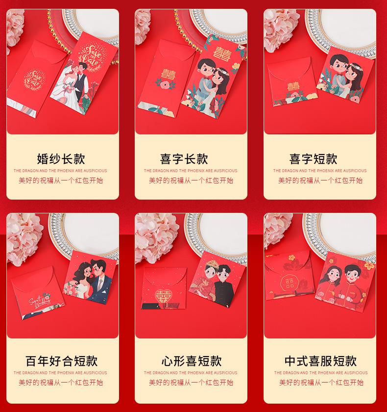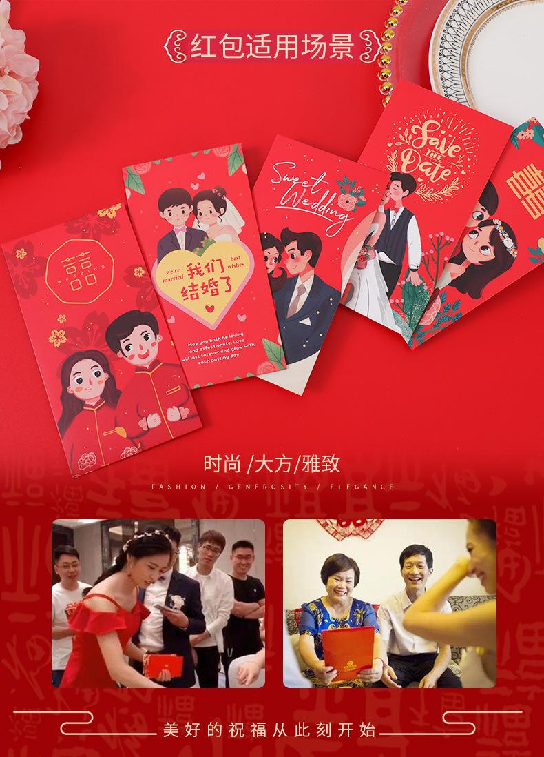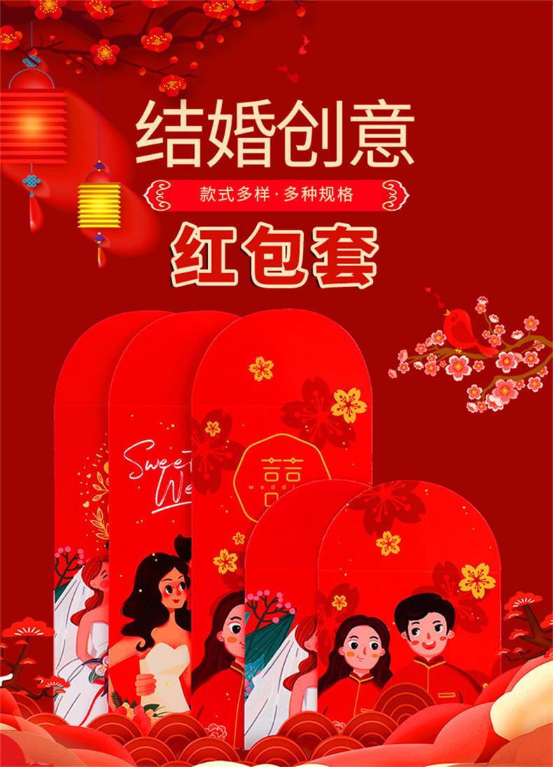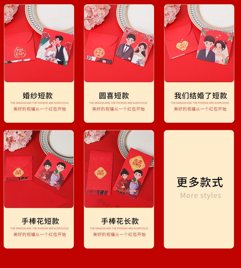 Sobre rojo de boda, sobre rojo de boda, sobre rojo de boda, estampado dorado de novia, cientos de miles de yuanes, mini sobre rojo creativo universal