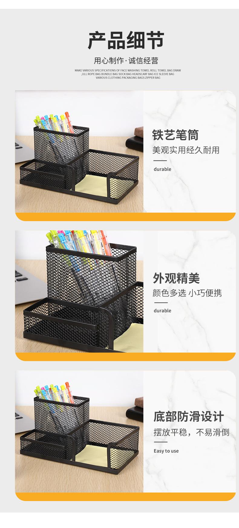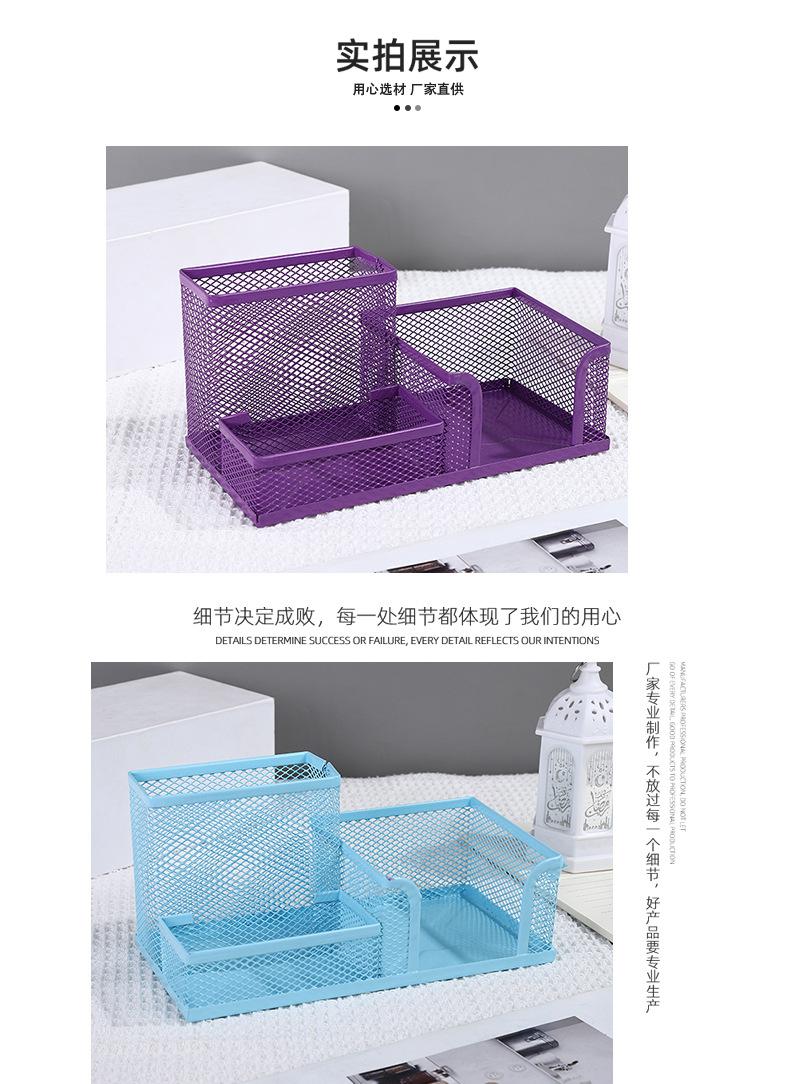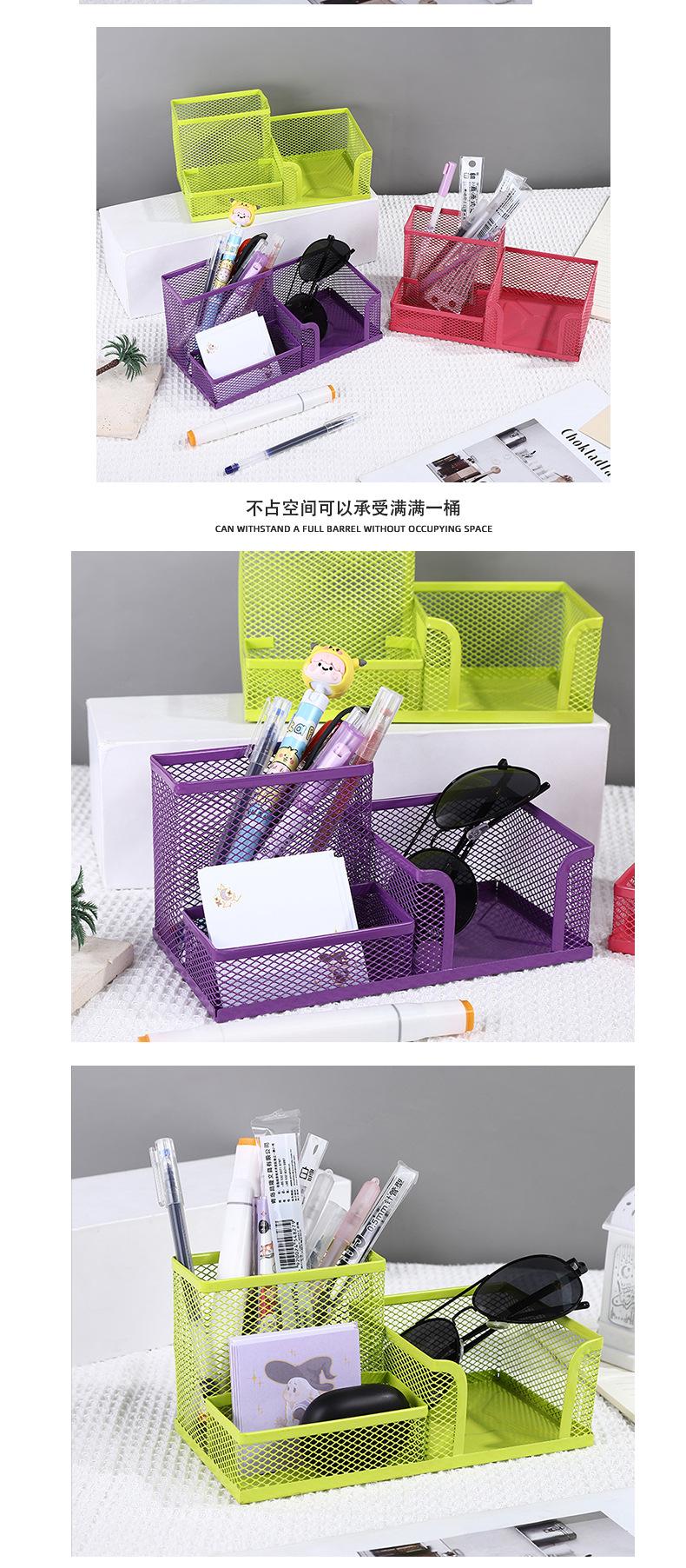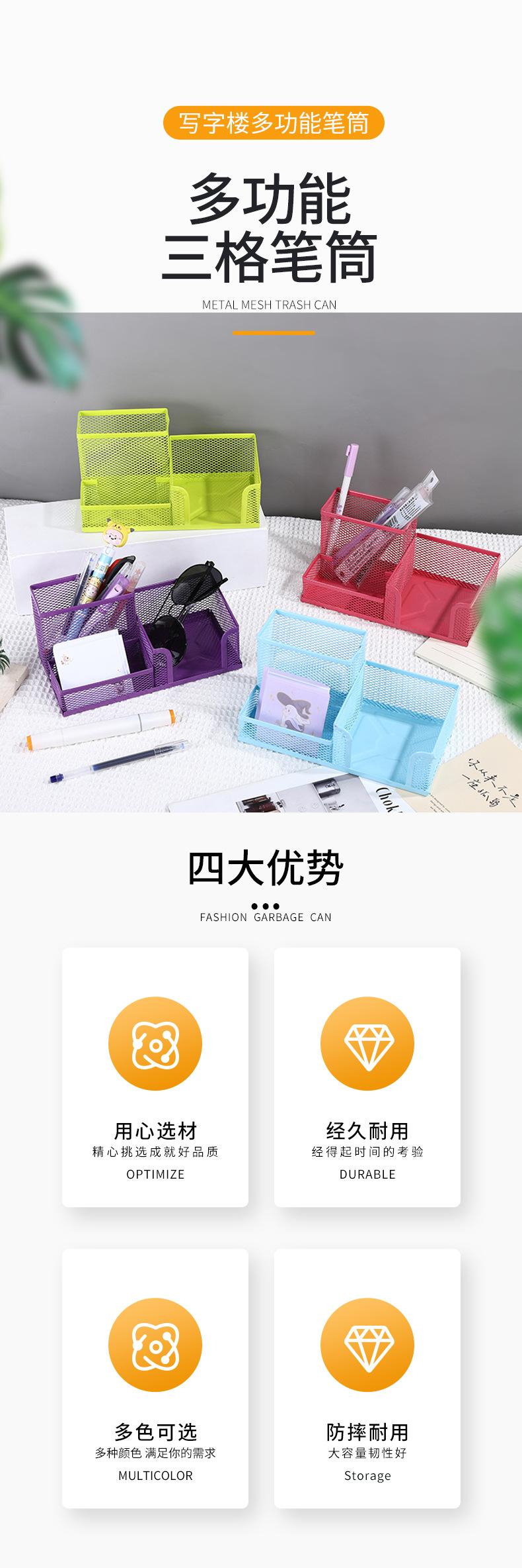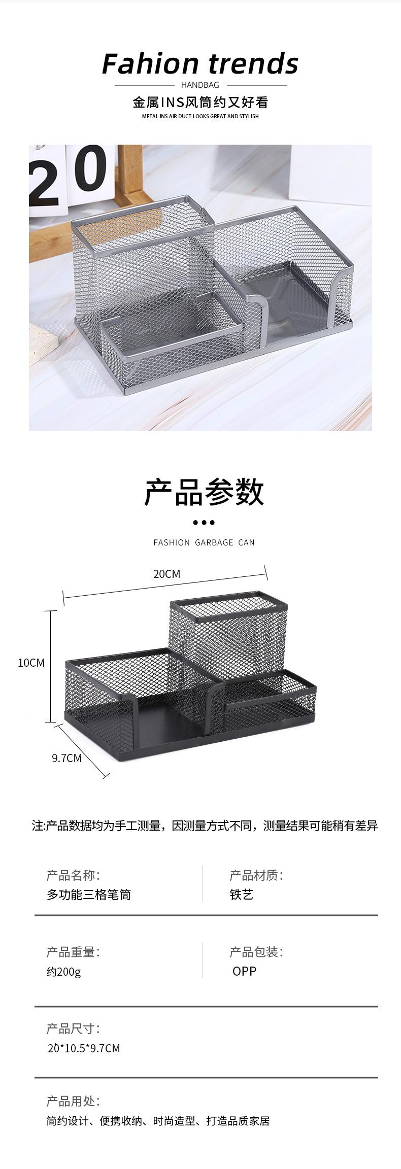 Contenedor de bolígrafos multifuncional de combinación, gran capacidad, malla de hierro, tres compartimentos, almacenamiento de escritorio, oficina, estudiantes, papelería de metal.