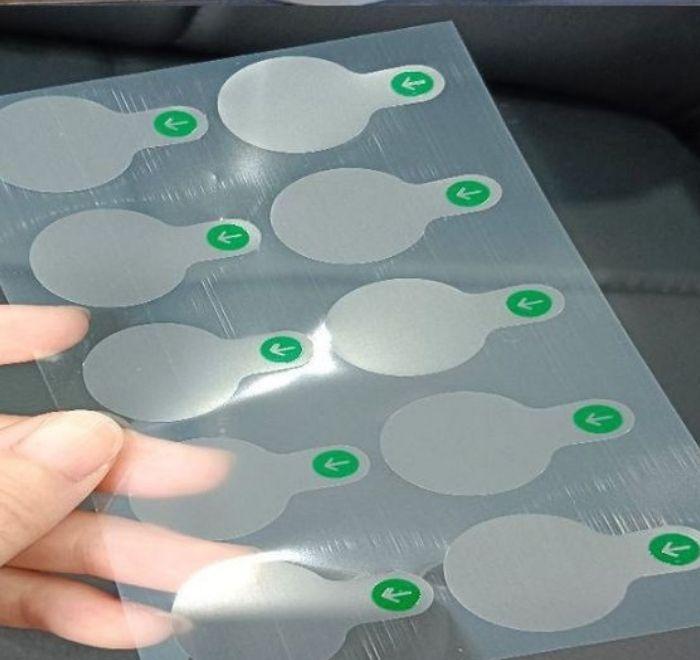 Película esmerilada resistente a rayones para lentes de vidrio, impresión con flecha verde rasgada a mano, película protectora, material PET, pegamento no residual de baja adherencia