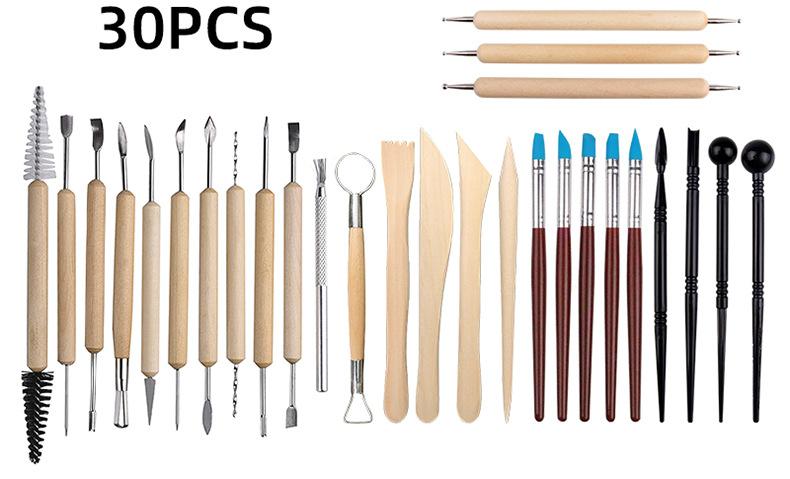 Juego de 30 herramientas de cerámica para cerámica, arcilla, piedra, escultura, cuchillo para tallar arcilla, bricolaje, taladro de silicona, herramientas de pintura con hendiduras.