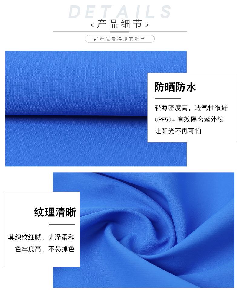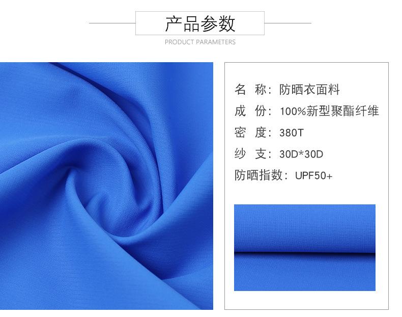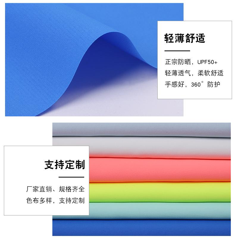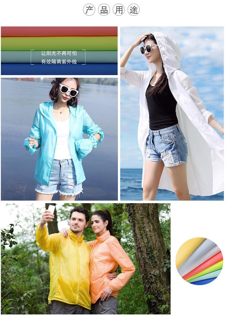 La tela tiene las características de protección solar, repelencia al agua, ligereza, suavidad y transpirabilidad, y se usa ampliamente en ropa de protección solar, ropa de protección solar, ropa para la piel, cortavientos de protección solar, etc.