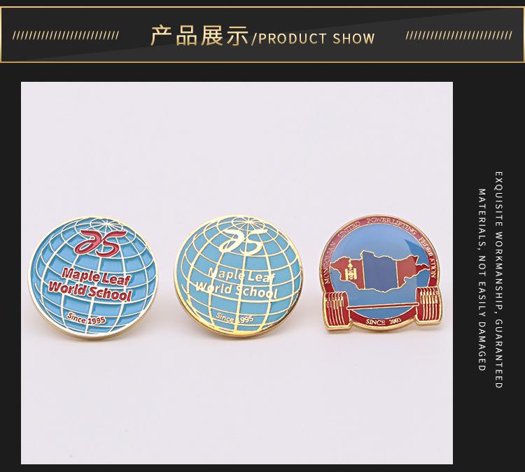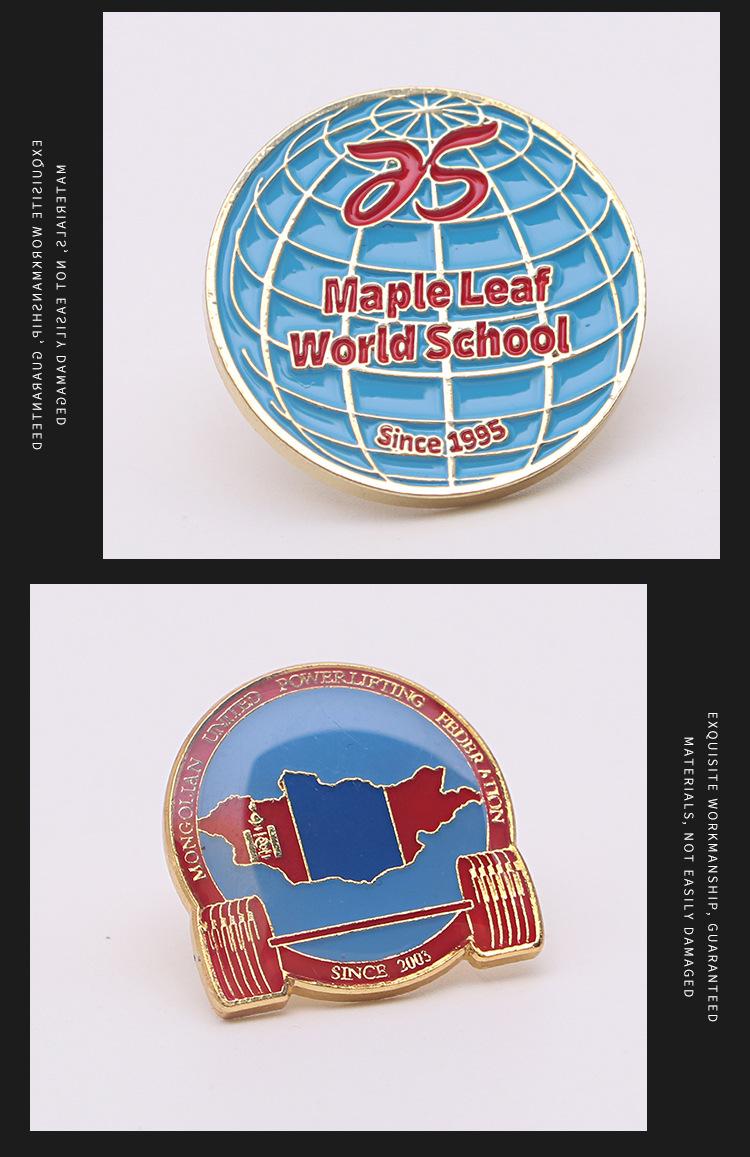 Insignia de metal de fábrica, medalla de esmalte de aleación de zinc personalizada, venta al por mayor, insignia conmemorativa con pegamento, insignia escolar personalizada