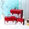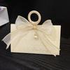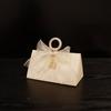 El nuevo tamaño mediano beige mide aproximadamente 15 cm de largo, 8 cm de ancho, 8.5 cm de largo lateral biselado, y la altura total después de plegarlo es de aproximadamente 7.5 cm