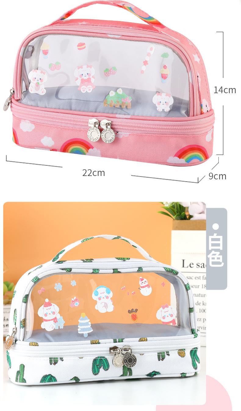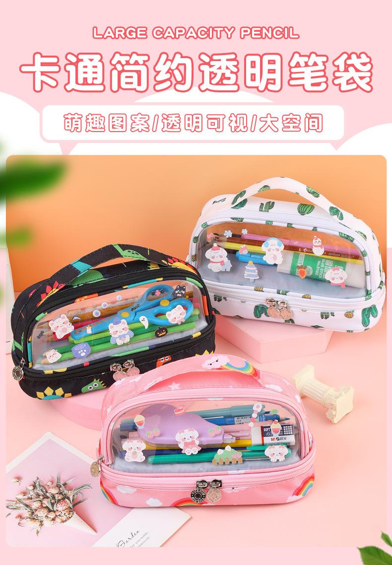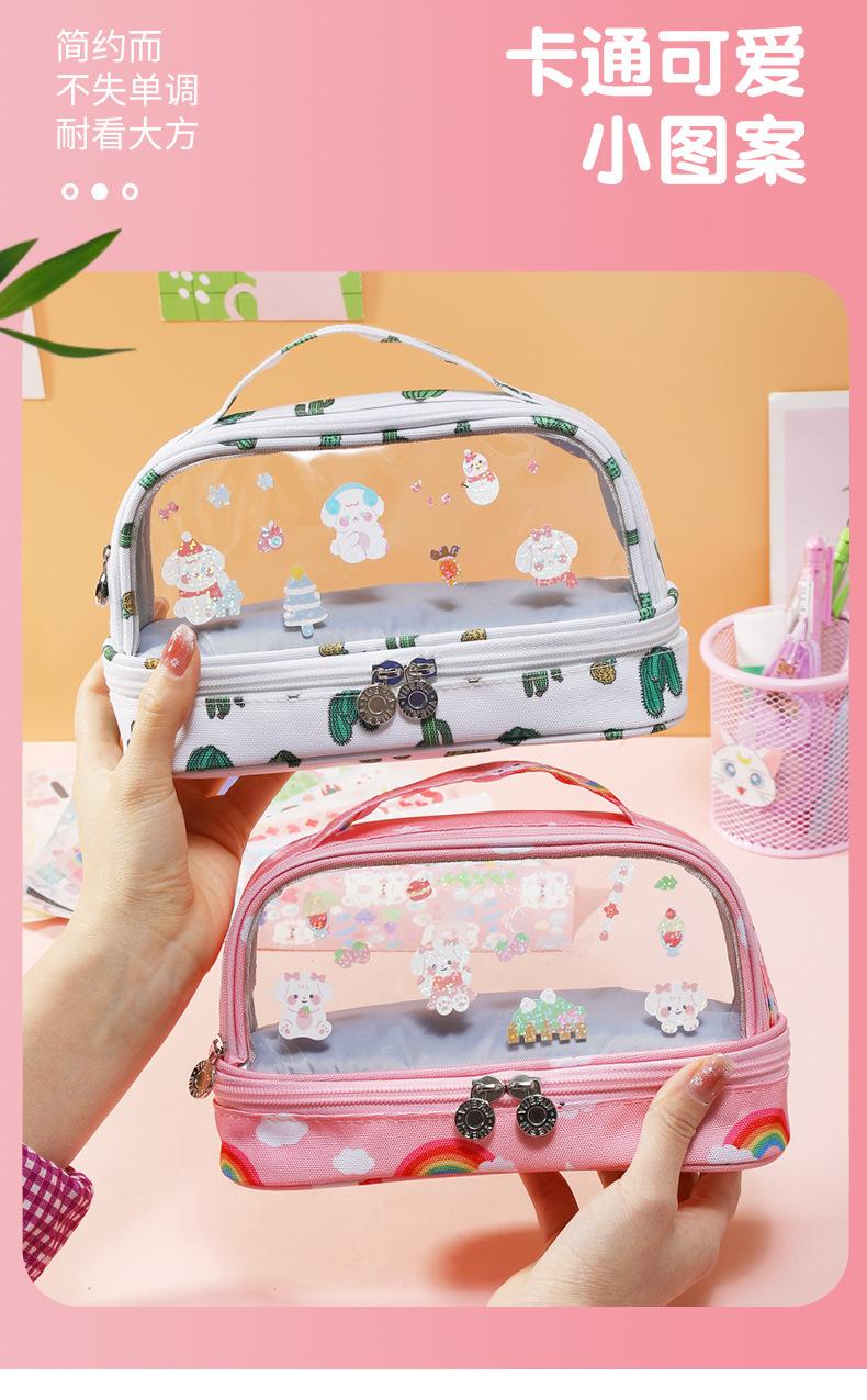Estuche de lona transparente de TPU multicapa de gran capacidad estilo coreano, estuche creativo DIY portátil para guardar papelería de estudiante