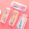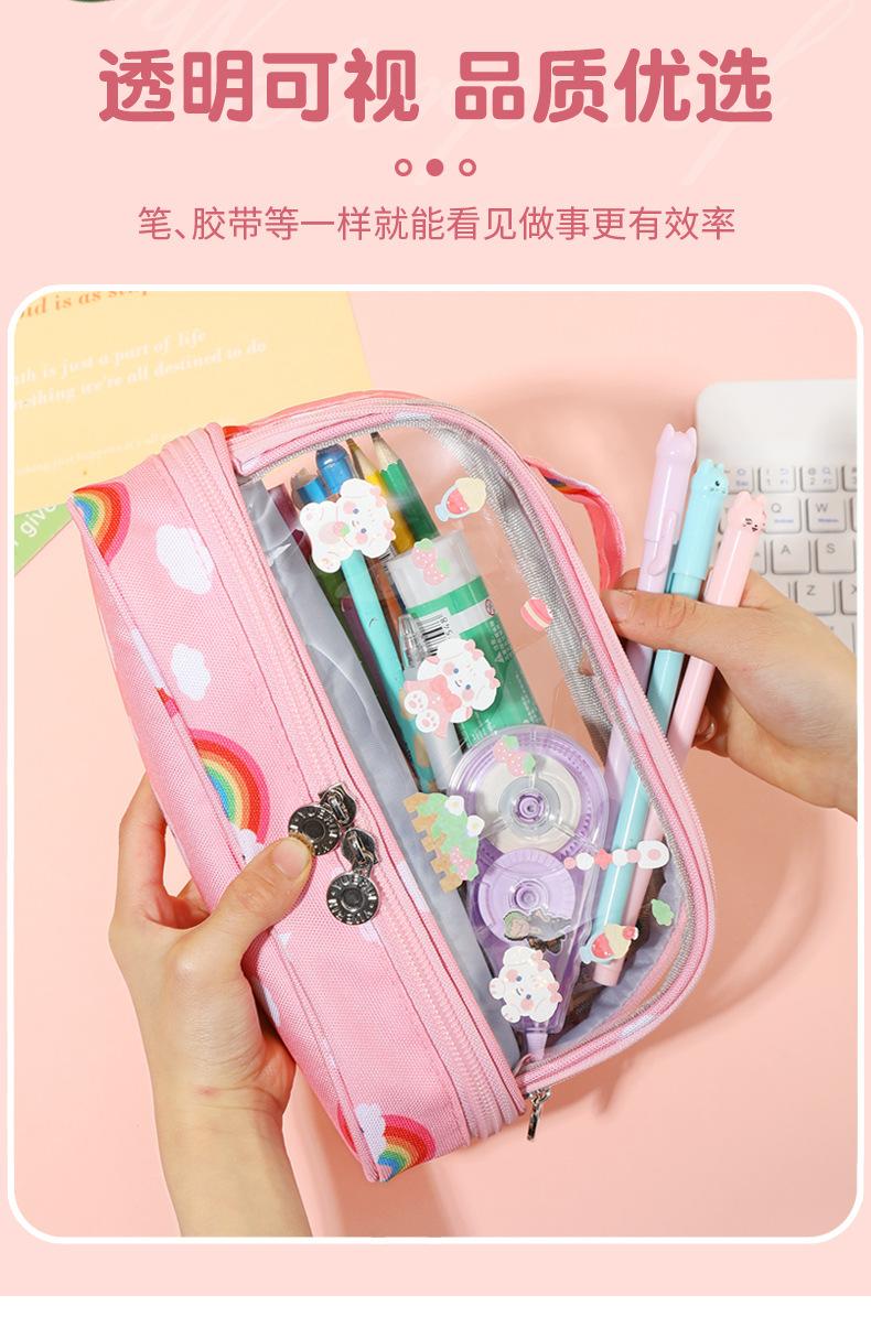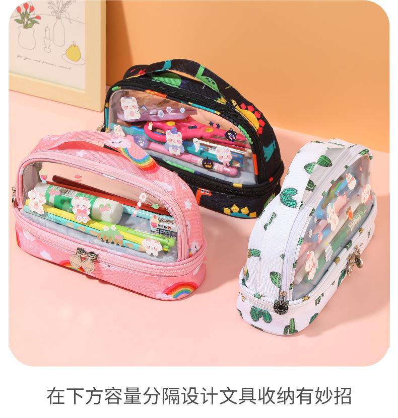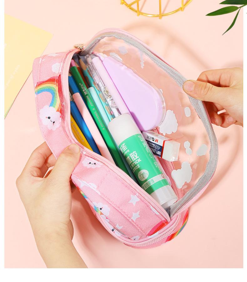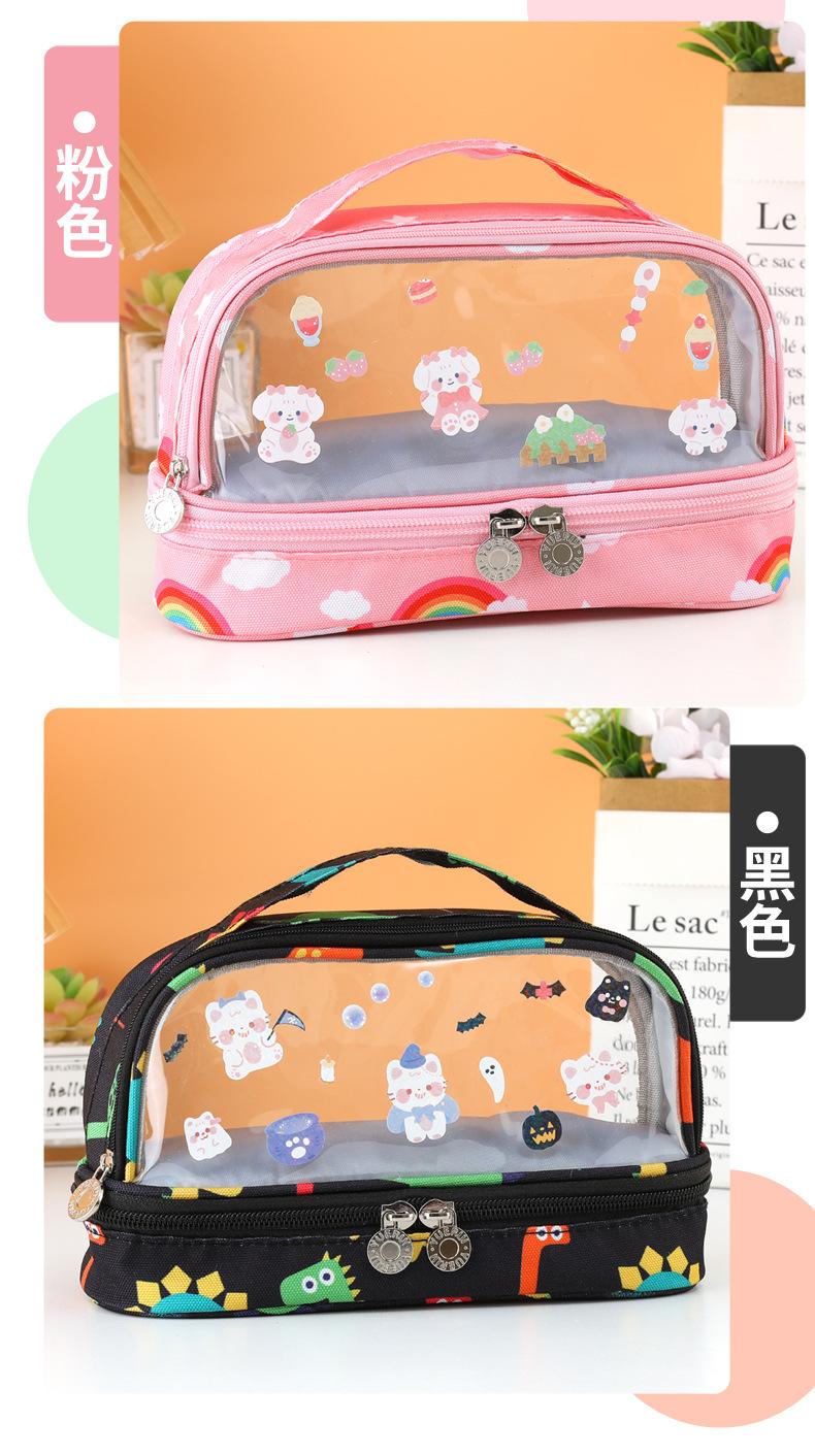 Estuche de lona transparente de TPU multicapa de gran capacidad estilo coreano, estuche creativo DIY portátil para guardar papelería de estudiante
