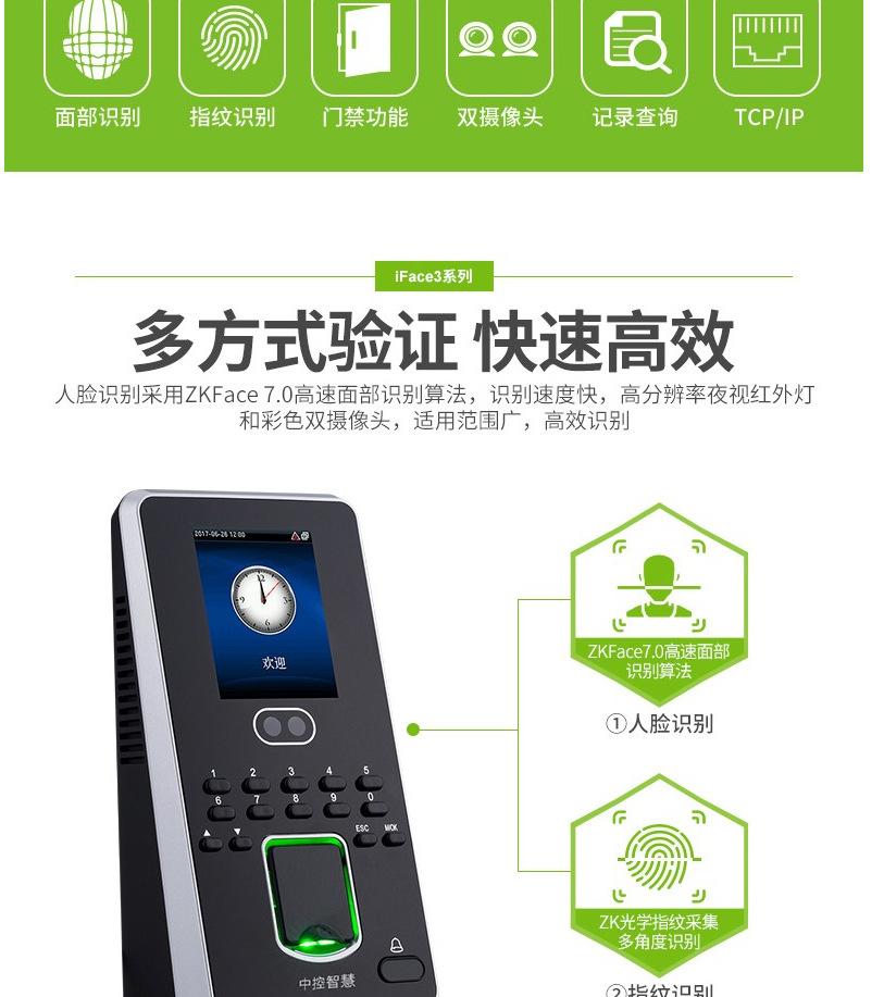 Control central inteligente iface3 Control de acceso con reconocimiento facial Tarjeta de huellas dactilares todo en uno Máquina de asistencia con tarjeta Máquina de tarjetas faciales Estándar