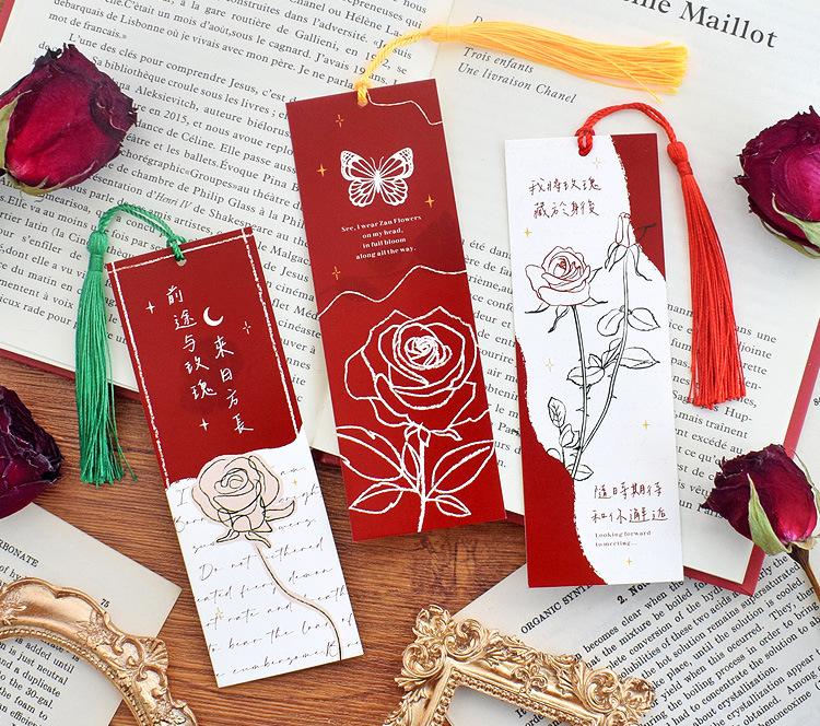 Separador de Libros Rosa Valor de Color Alto Estilo Chino Uso para Estudiantes Estilo Retro Arte Romántico Tarjeta Pequeña Papel Regalo Creativo