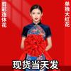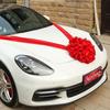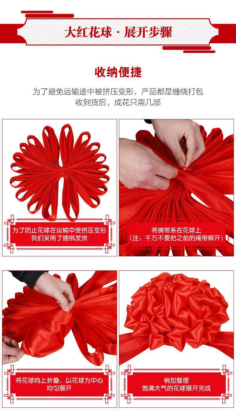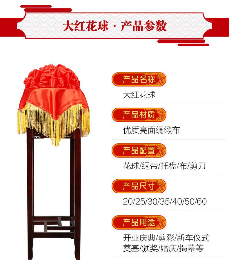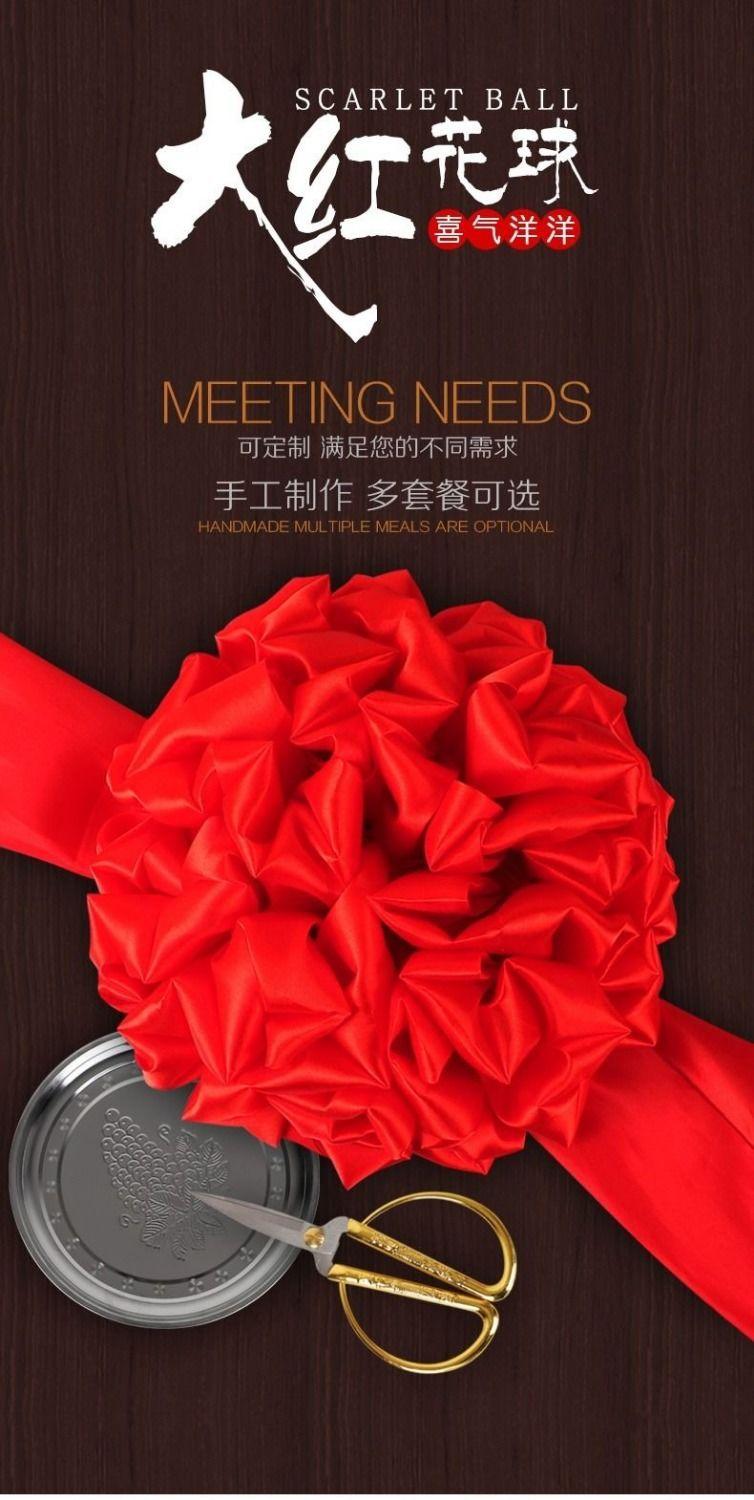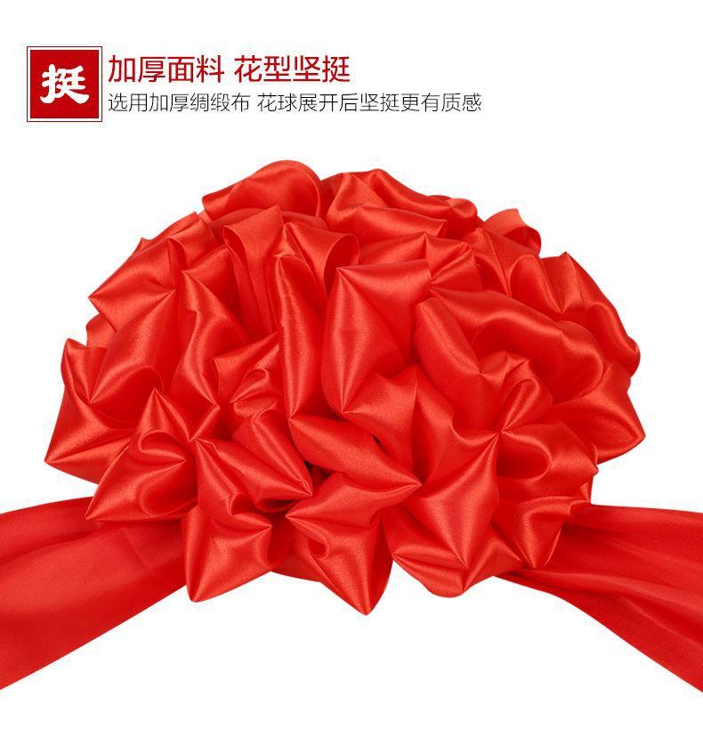 Gran bola de flores rojas, entrega de un auto nuevo, premio de elogio, decoración de boda con tela de seda roja, hortensias rojas, ceremonia de apertura, corte de cinta