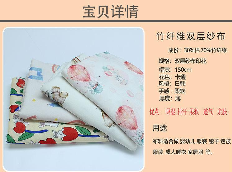 Tela de Gasa de Doble Capa de Fibra de Bambú Estampado Digital de Dibujos Animados Ropa de Bebé Pijama Tela