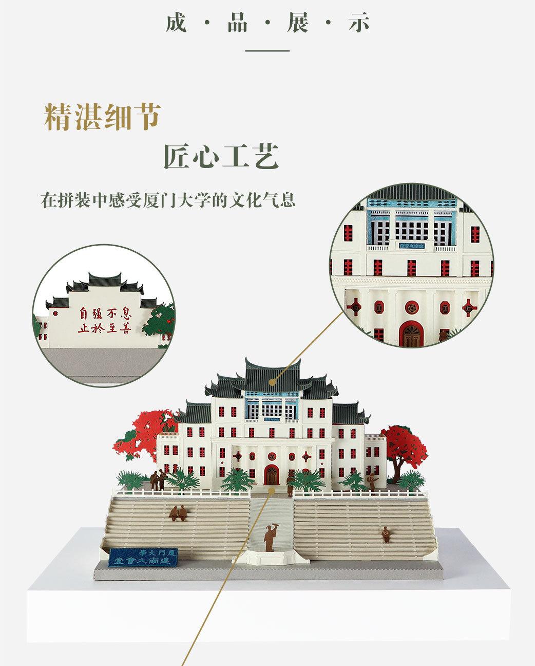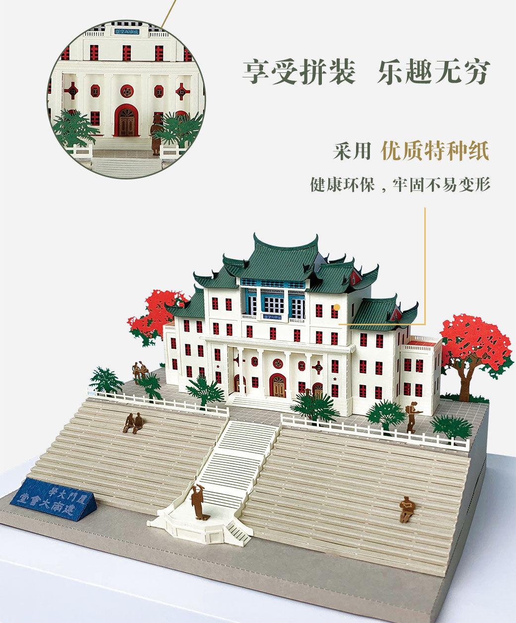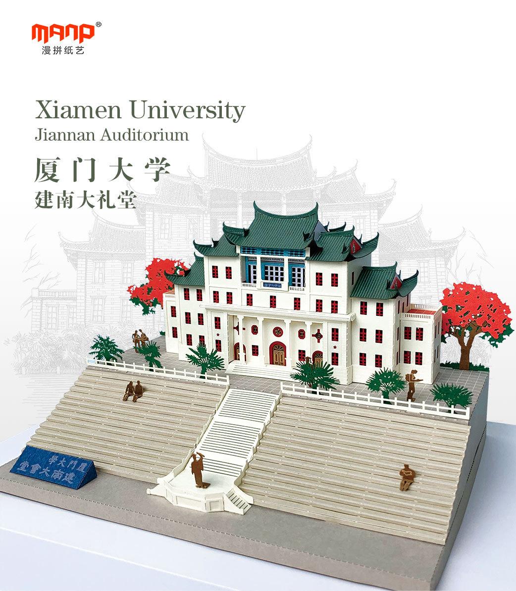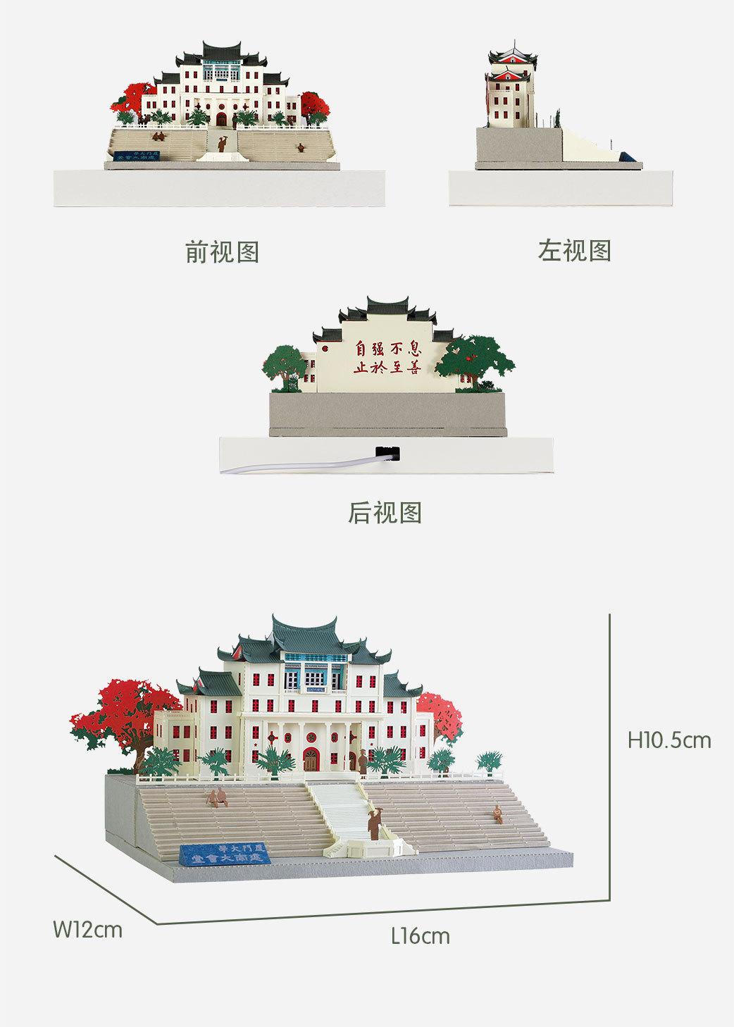 Luz nocturna tridimensional con rompecabezas de papel fino tallado de la Universidad de Xiamen, regalo creativo para graduarse y enviar a amigos de viaje.