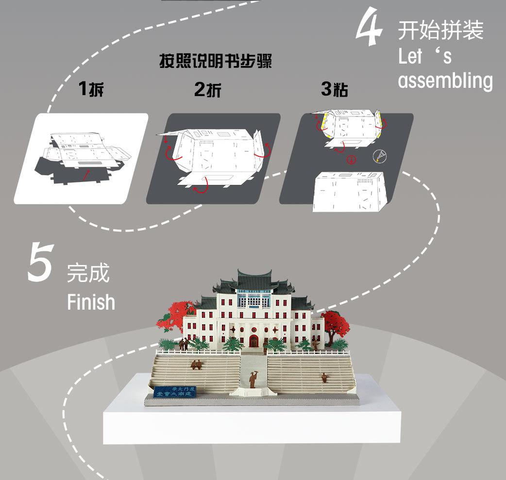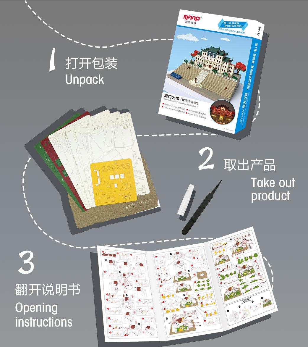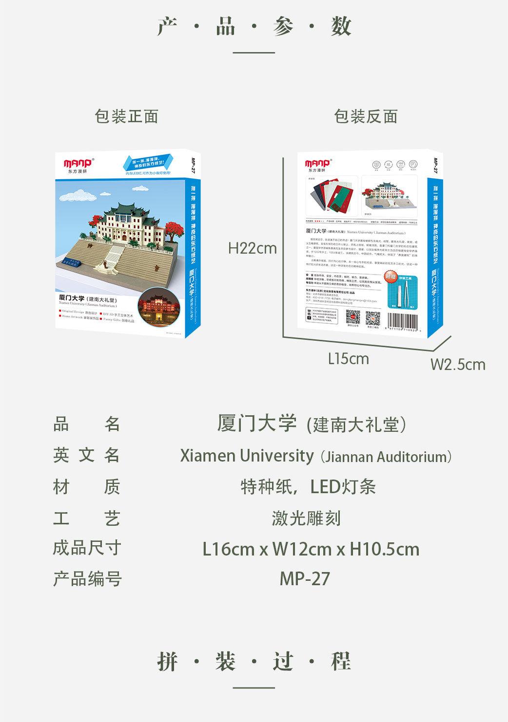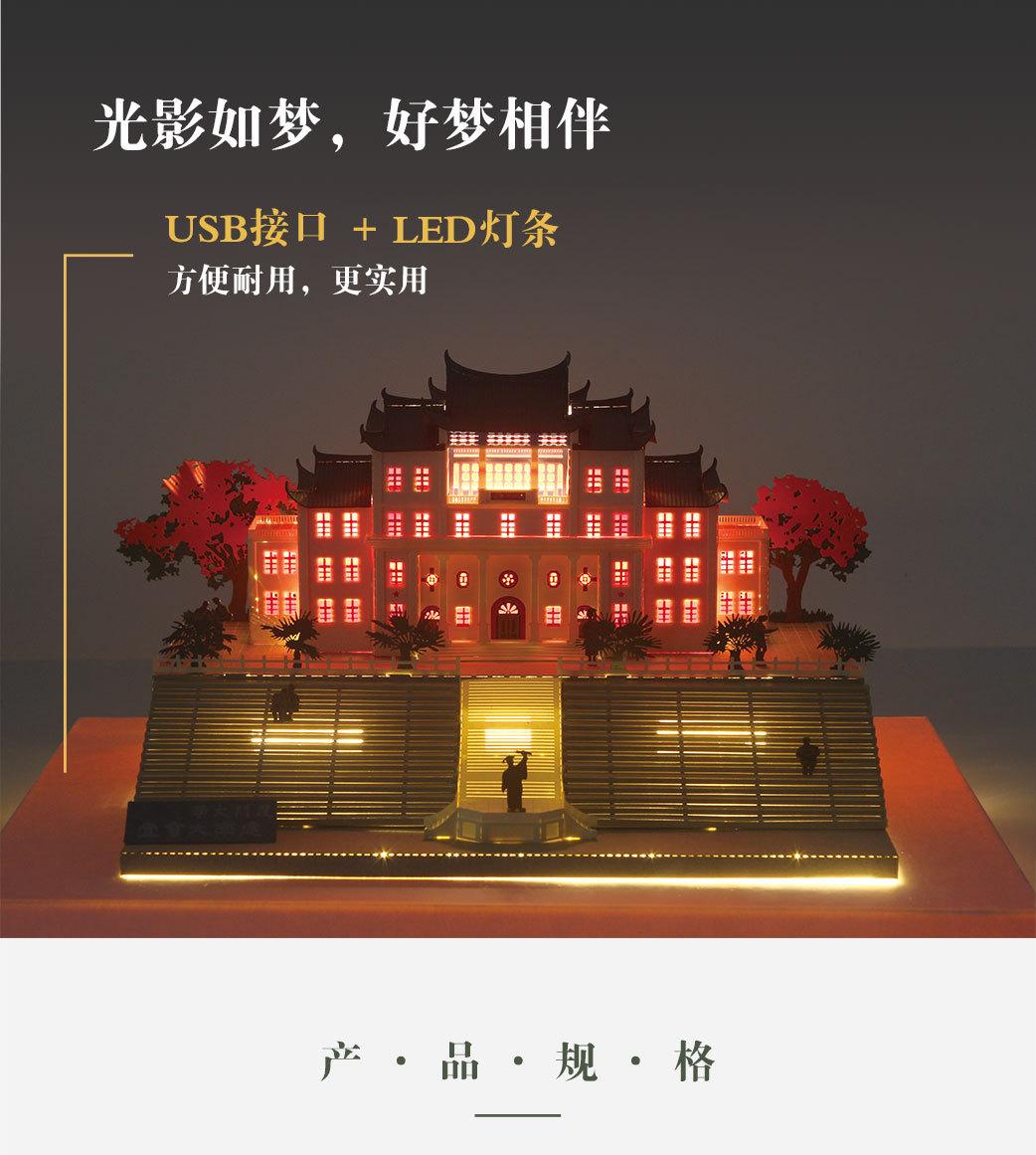 Luz nocturna tridimensional con rompecabezas de papel fino tallado de la Universidad de Xiamen, regalo creativo para graduarse y enviar a amigos de viaje.