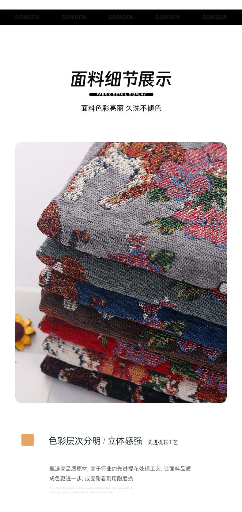 Tela jacquard de chenilla teñida en hilo de 380 g, disponible al por mayor, para maletas vintage, cojines de sofá y sofá.