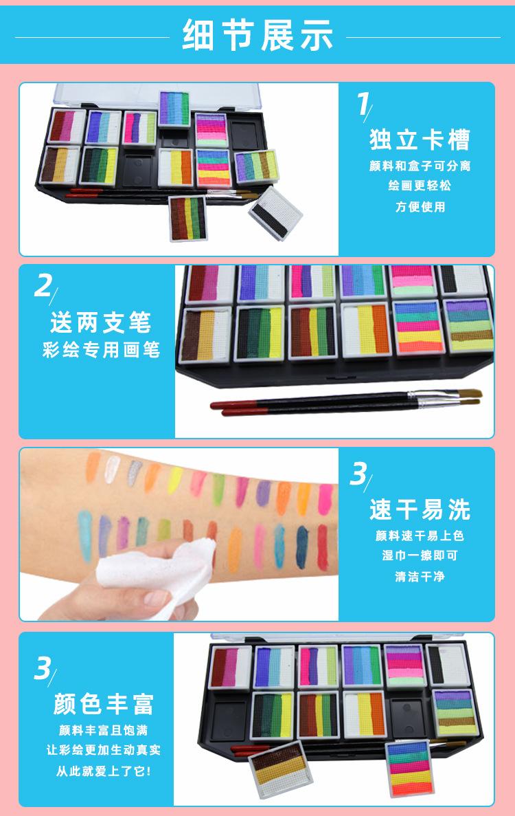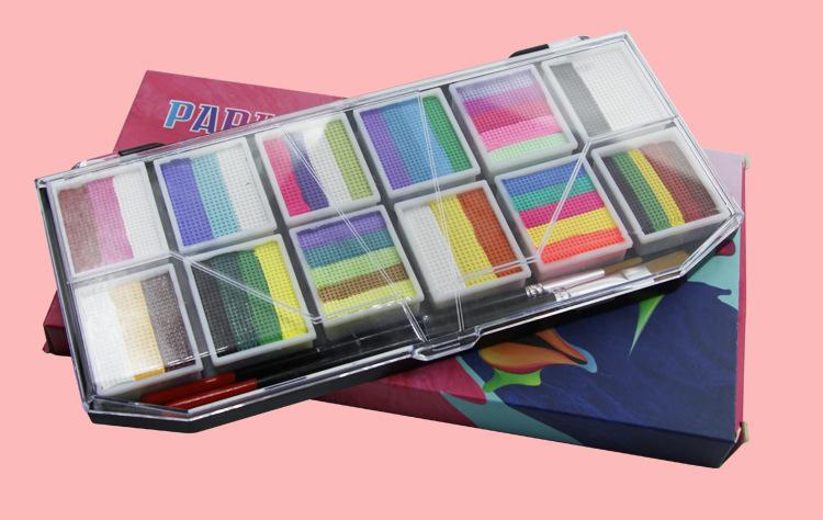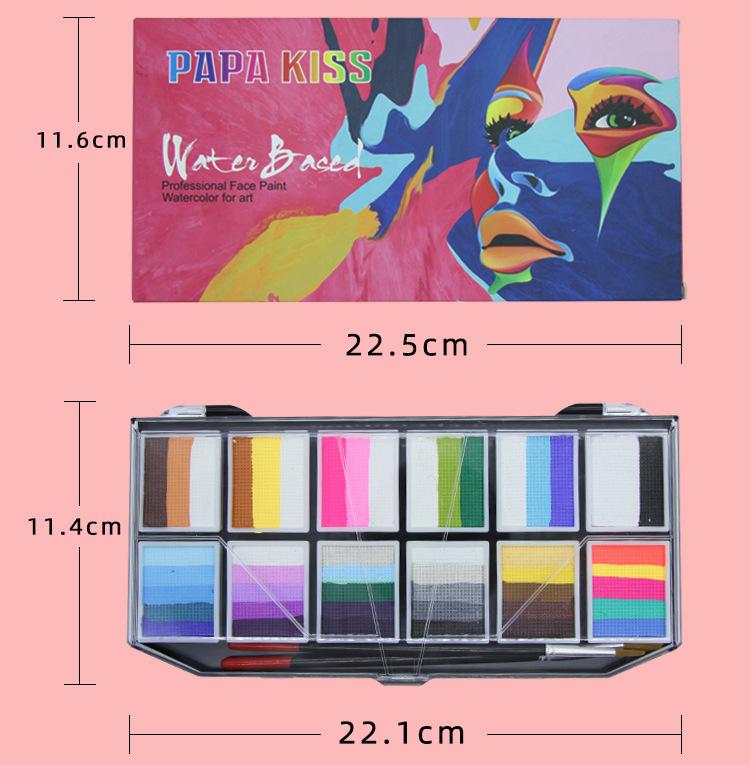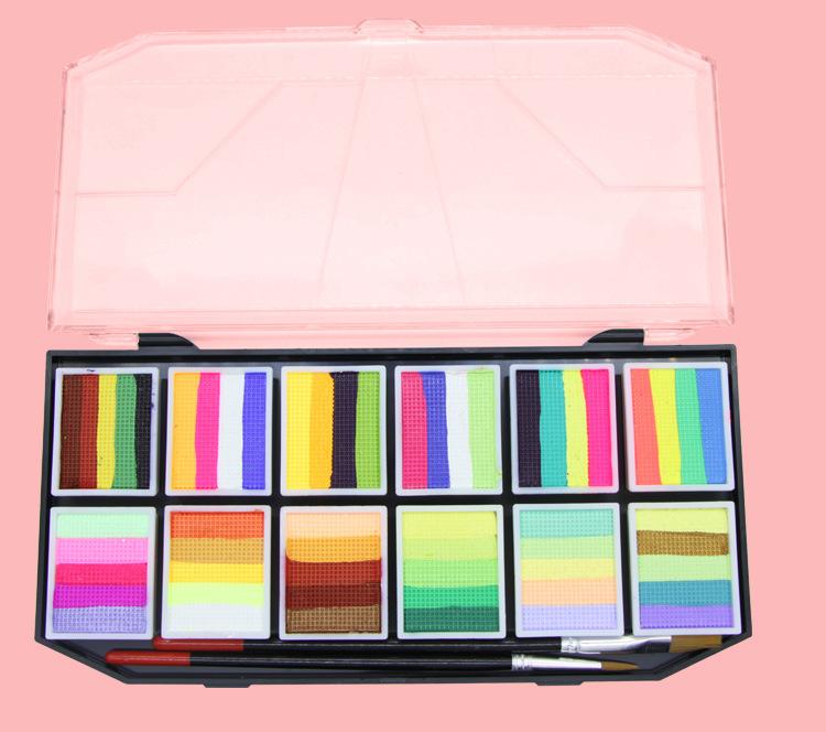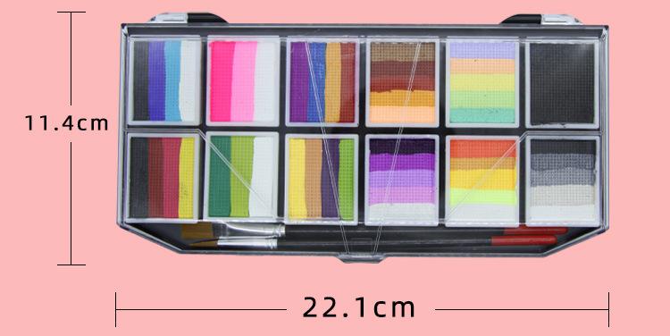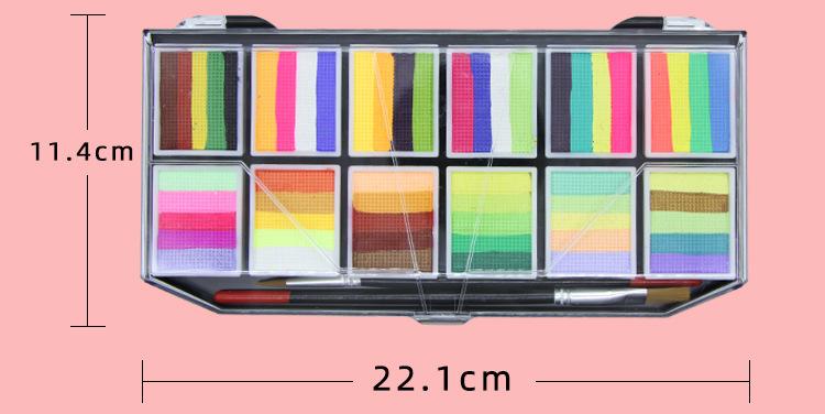 Pigmento de pintura corporal transfronterizo de 12 colores, degradado de color, lavable, tira de arcoíris, cambio de color perlado mate, pigmento mixto de fábrica