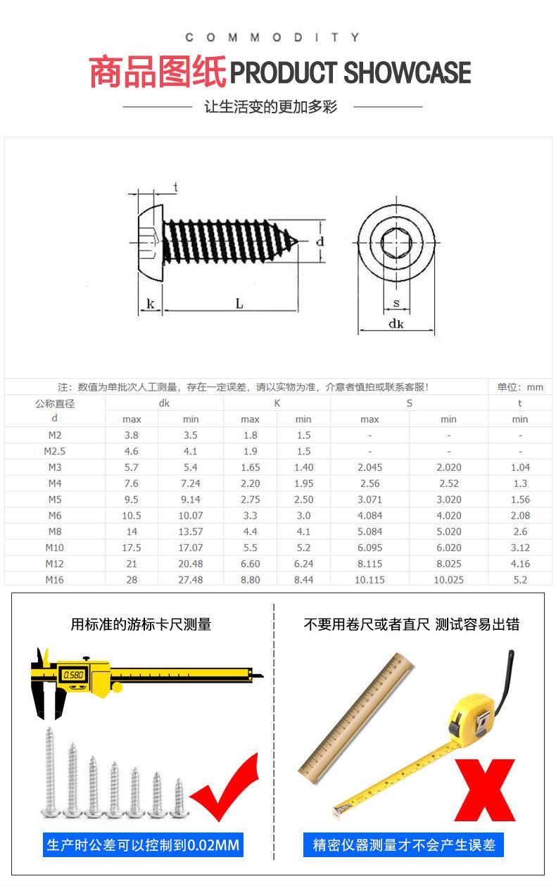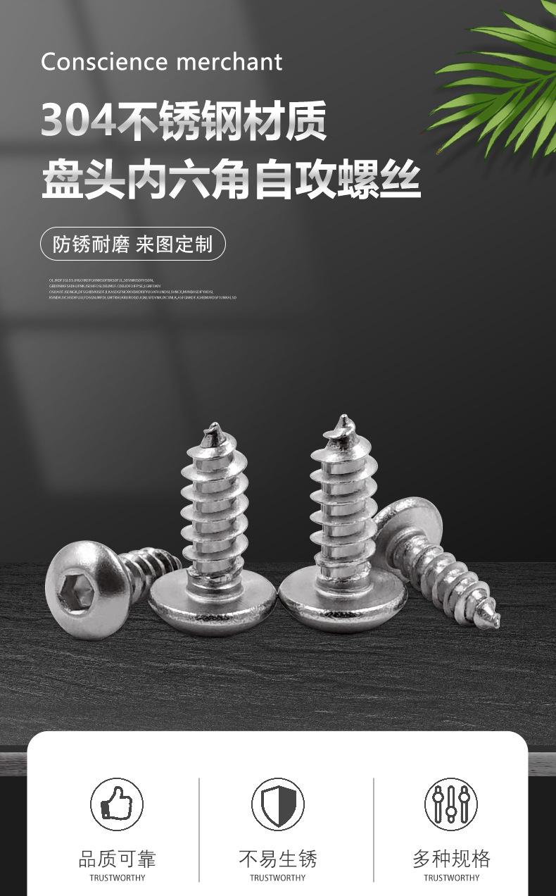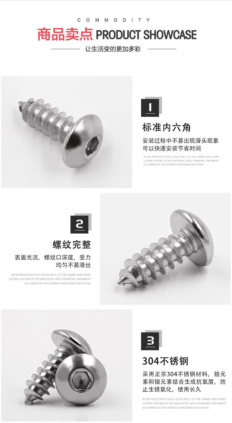 Tornillo de cabeza hexagonal de cabeza semicircular M2-M10 de acero inoxidable 304, tornillo autorroscante de cabeza plana con cabeza de hongo, venta al por mayor