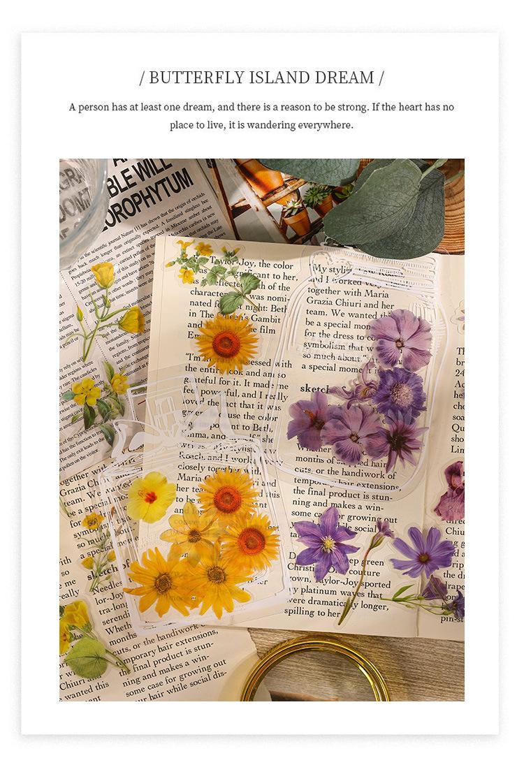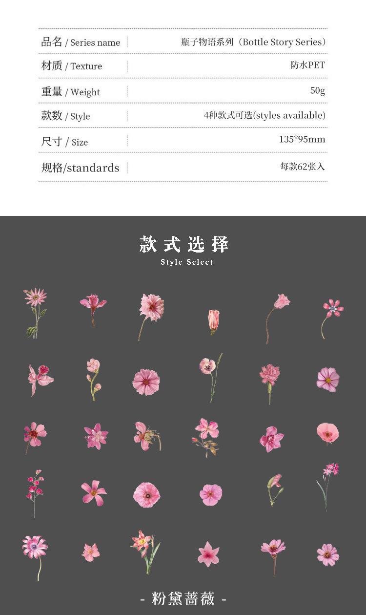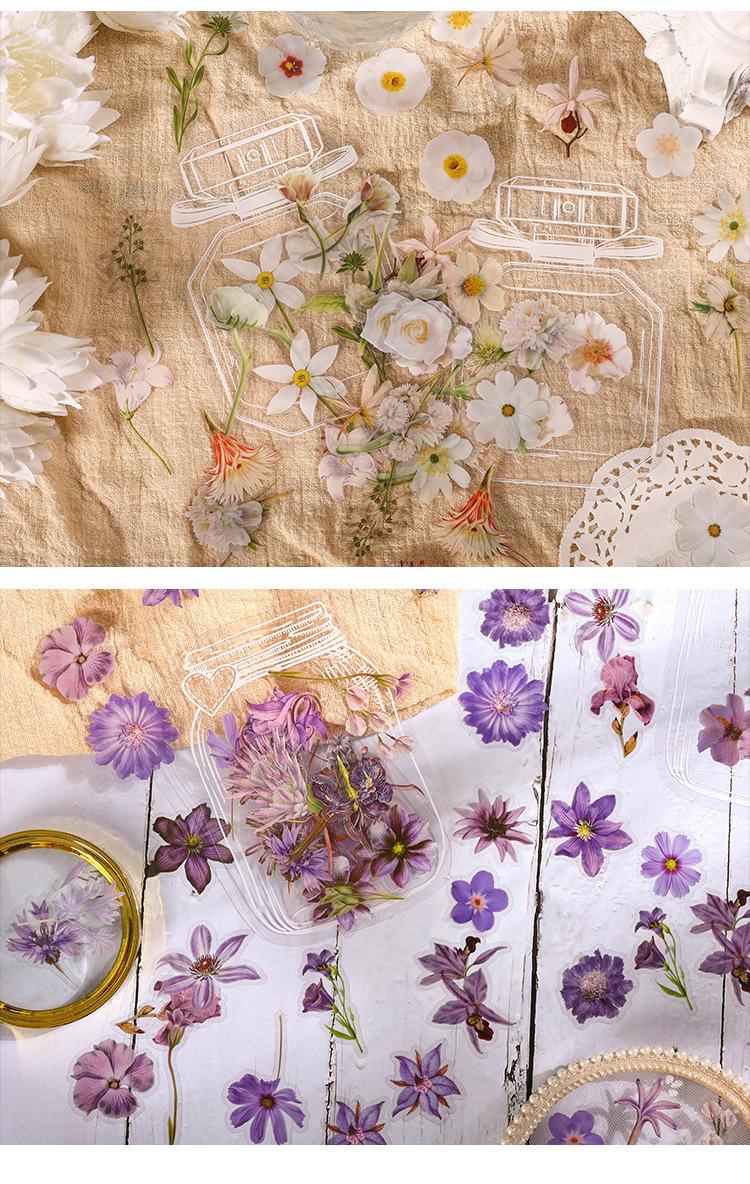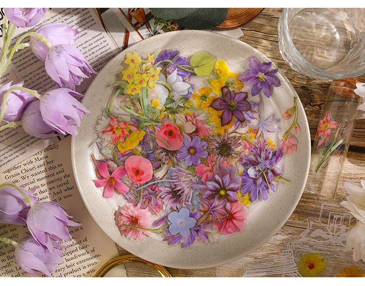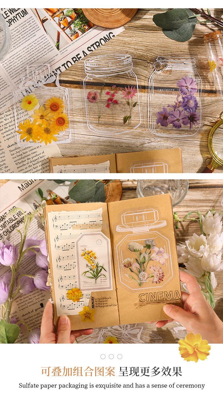 Pegatinas de PET para botellas de flores, impermeables, transparentes, para manualidades, para botellas de deseos, con forma de mano, para marcapáginas con relieve