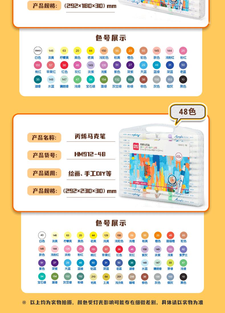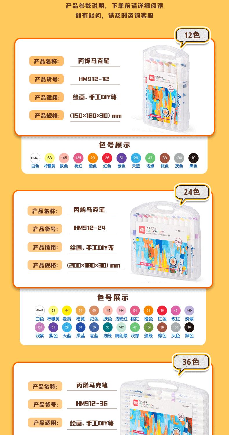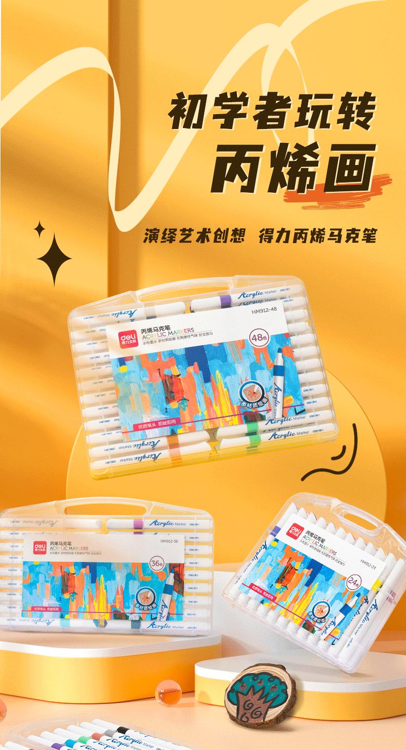 Juego de rotuladores acrílicos Deli resistentes al agua, 12, 24, 36 y 48 colores, a base de agua, para niños y estudiantes.