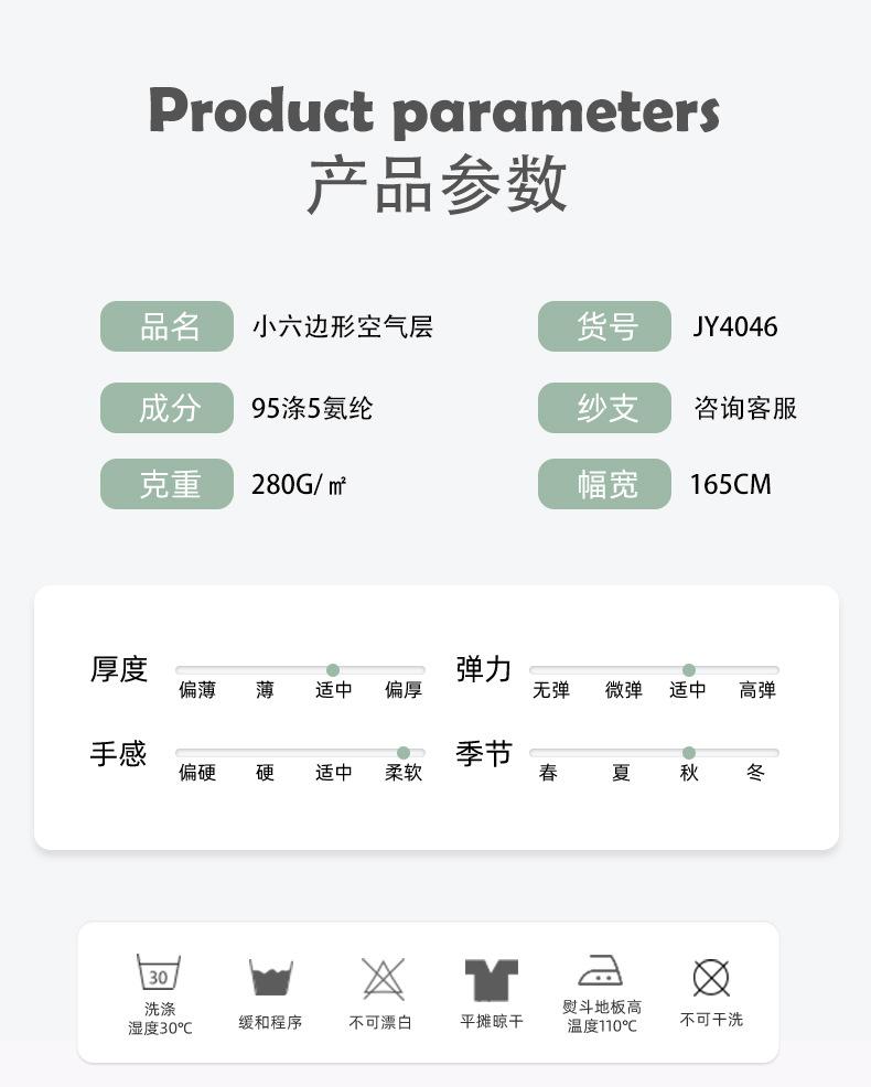 Tela de seda jacquar lisa con capa de aire de amoníaco de poliéster hexagonal pequeña de fábrica, tela cálida para suéter y abrigo, tela de moda