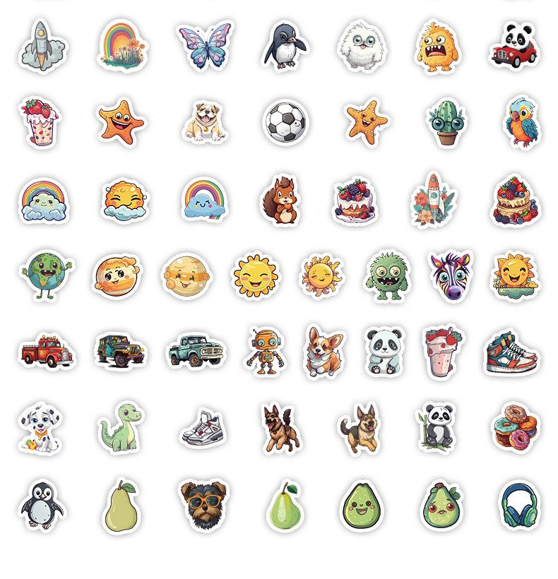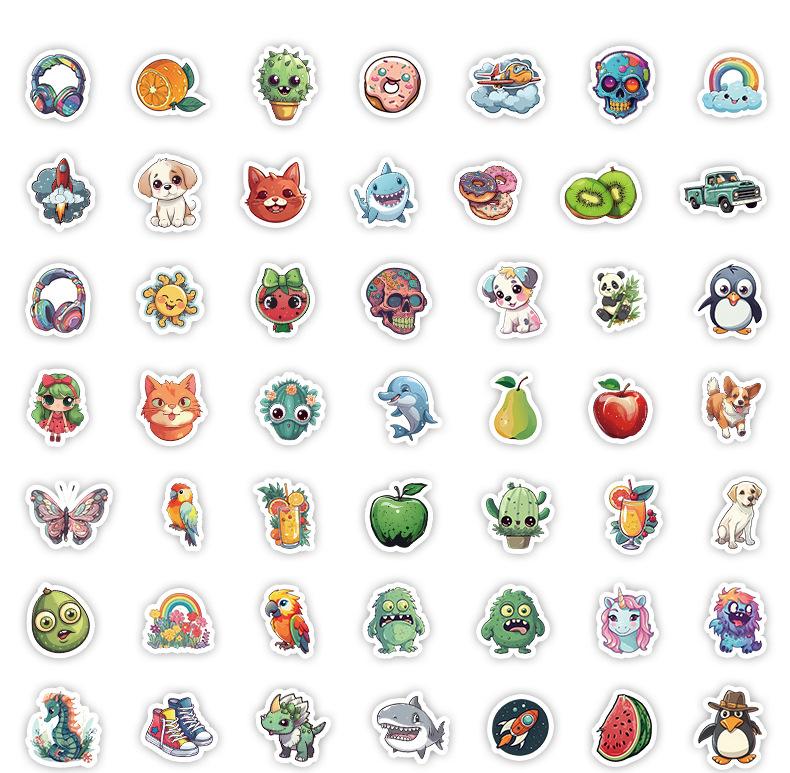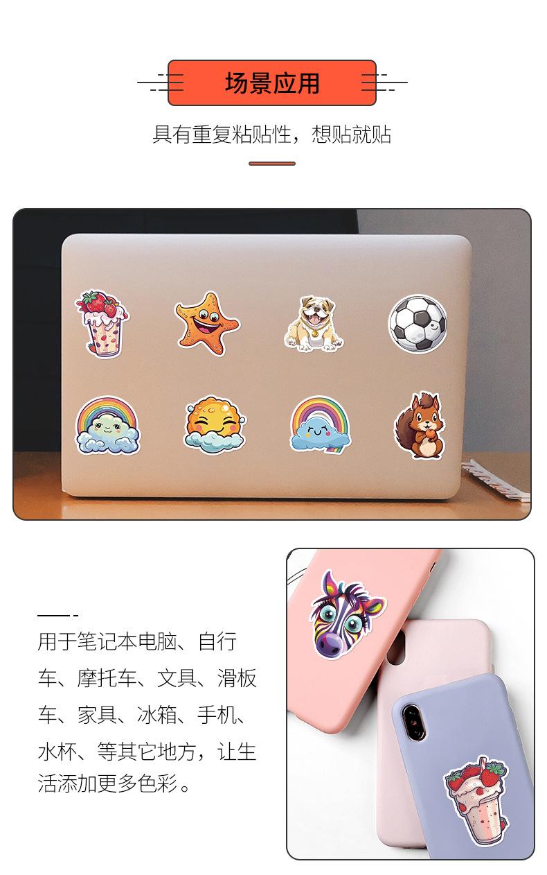 100 pegatinas transfronterizas de animales y plantas lindas para teléfono móvil, pegatinas decorativas impermeables para cuentas de mano de niños, pegatinas al por mayor