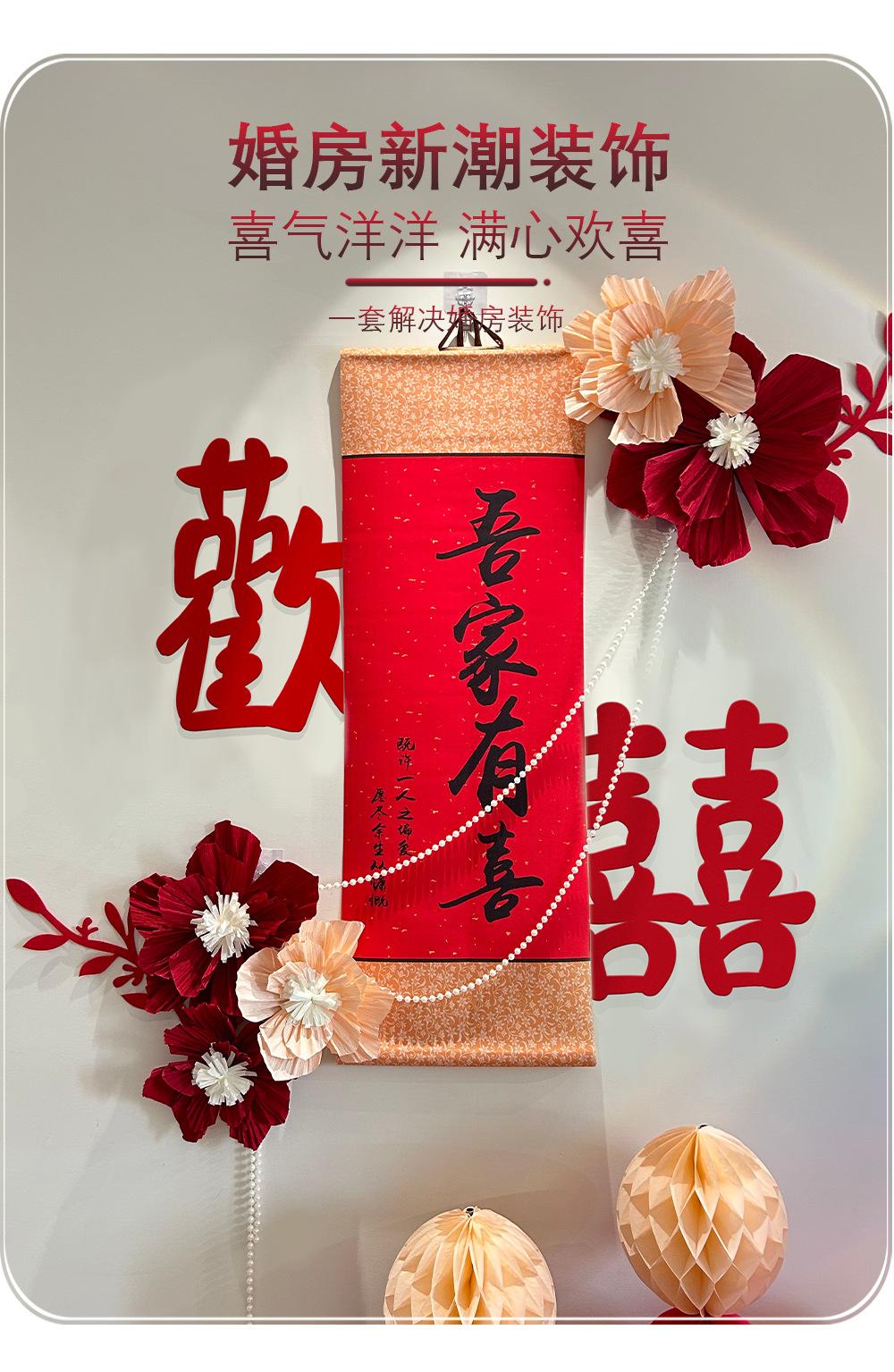 Boda estilo chino mi hogar feliz pergamino colgante pintura hombres y mujeres foto cuadrada fondo pared sala de estar dormitorio decoración diseño de la sala de bodas
