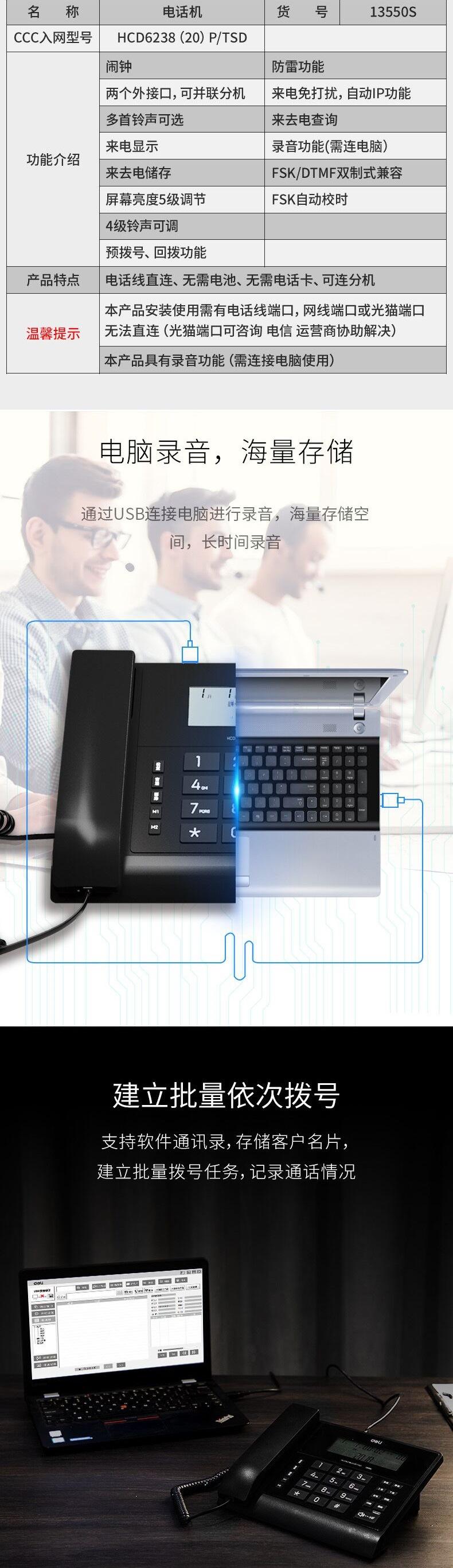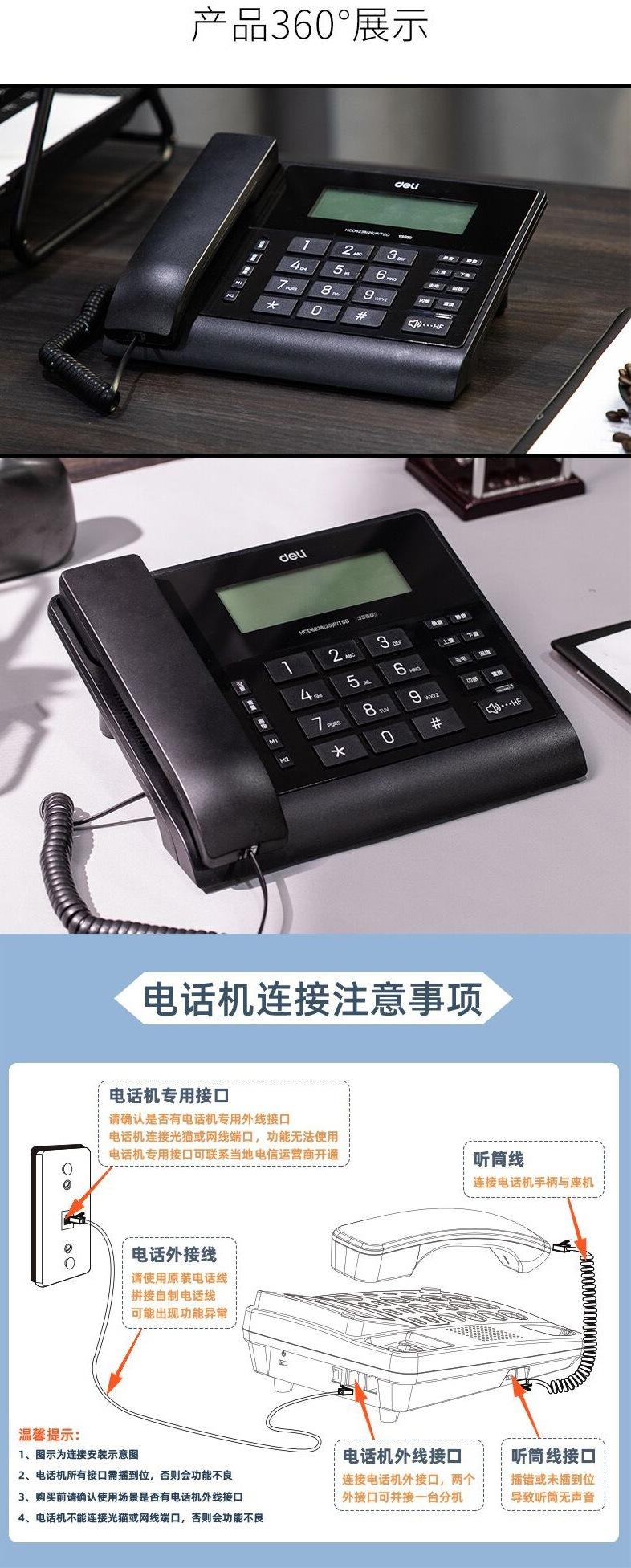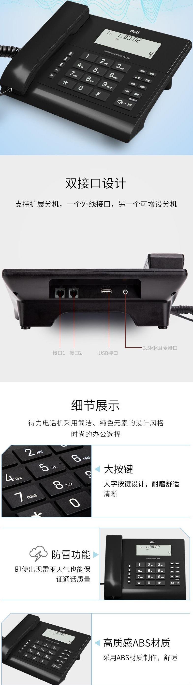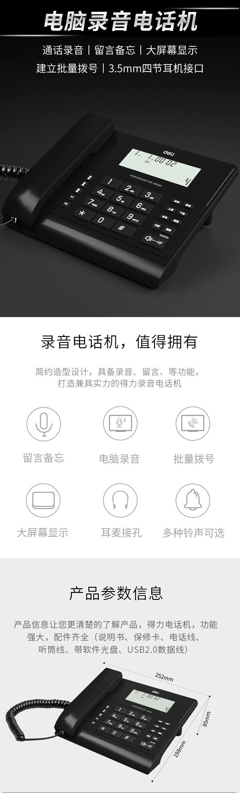 Teléfono de grabación para computadora Deli 13550s, teléfono fijo para uso doméstico y comercial, con cable, con discado fijo y multifuncional.