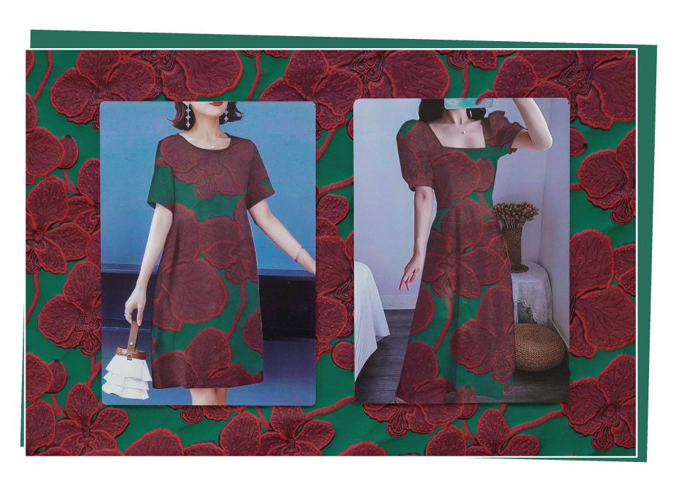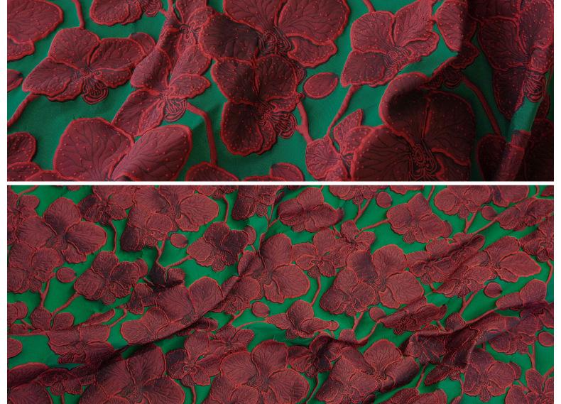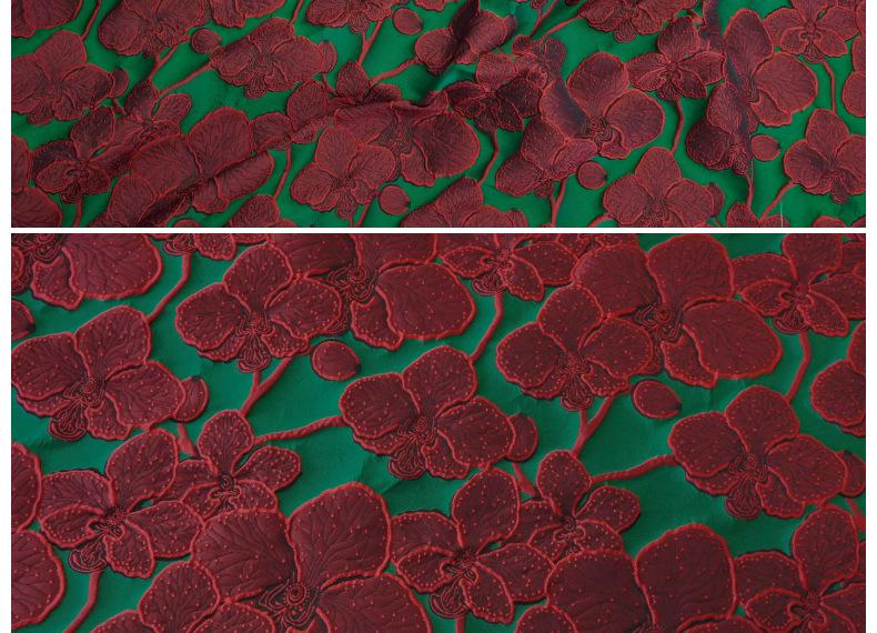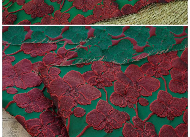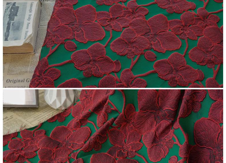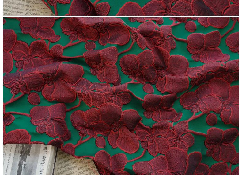 Tela decorativa de jacquard para vestido de mujer, con estampado de flores rojas en relieve de primavera y otoño, de color retro en contraste, teñida en hilo brillante