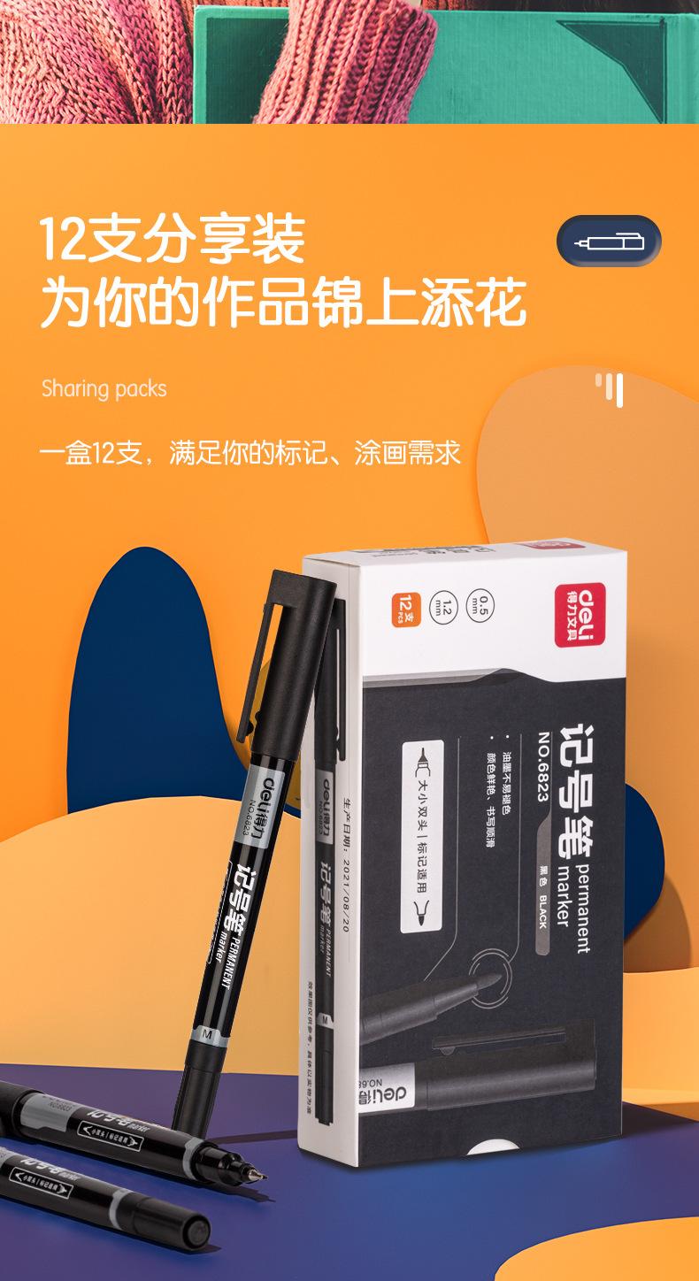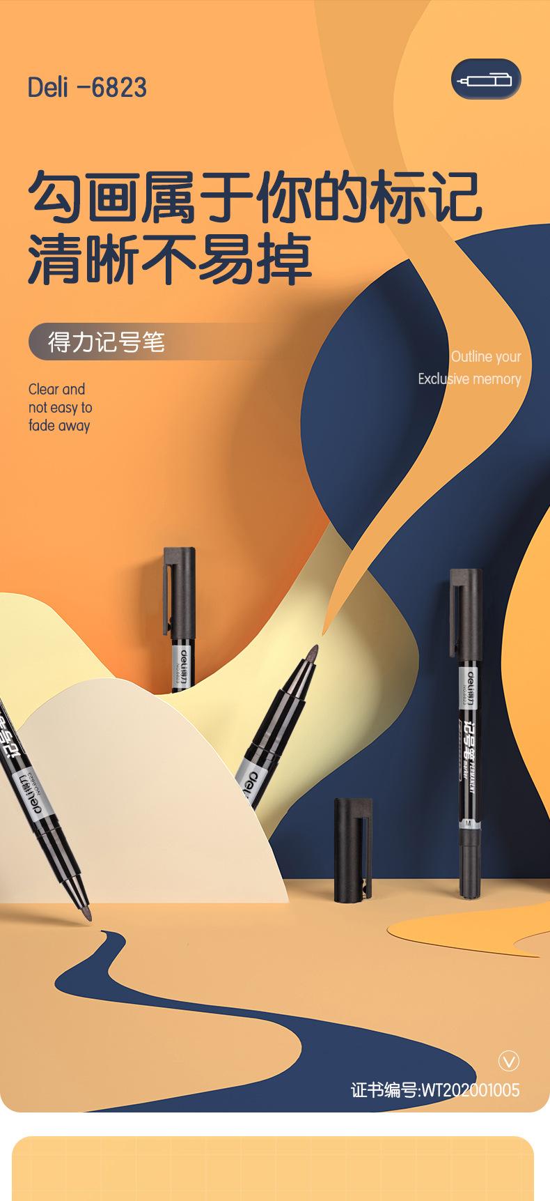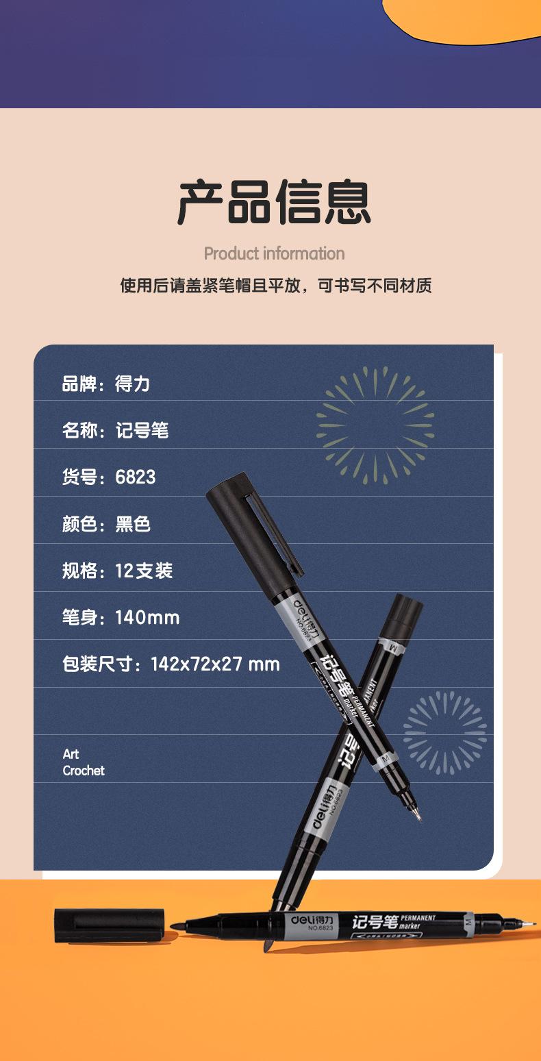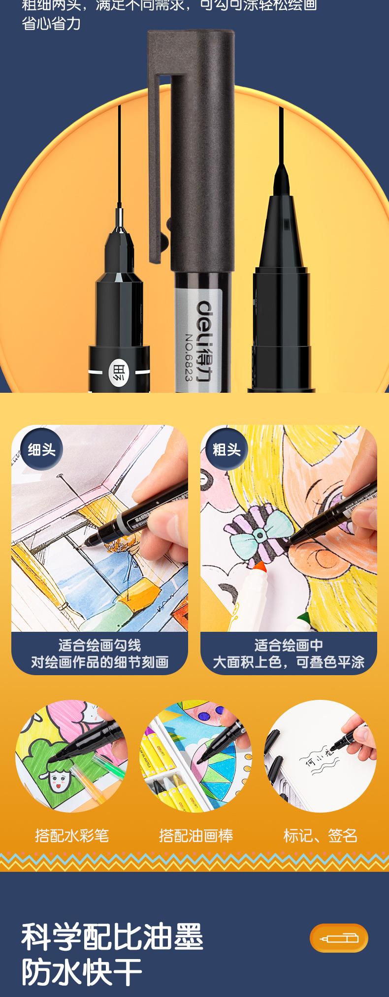 Pluma de gancho Deli a base de agua negra roja punta fina arte para estudiantes niños papelería especial marcador aceitoso de doble punta