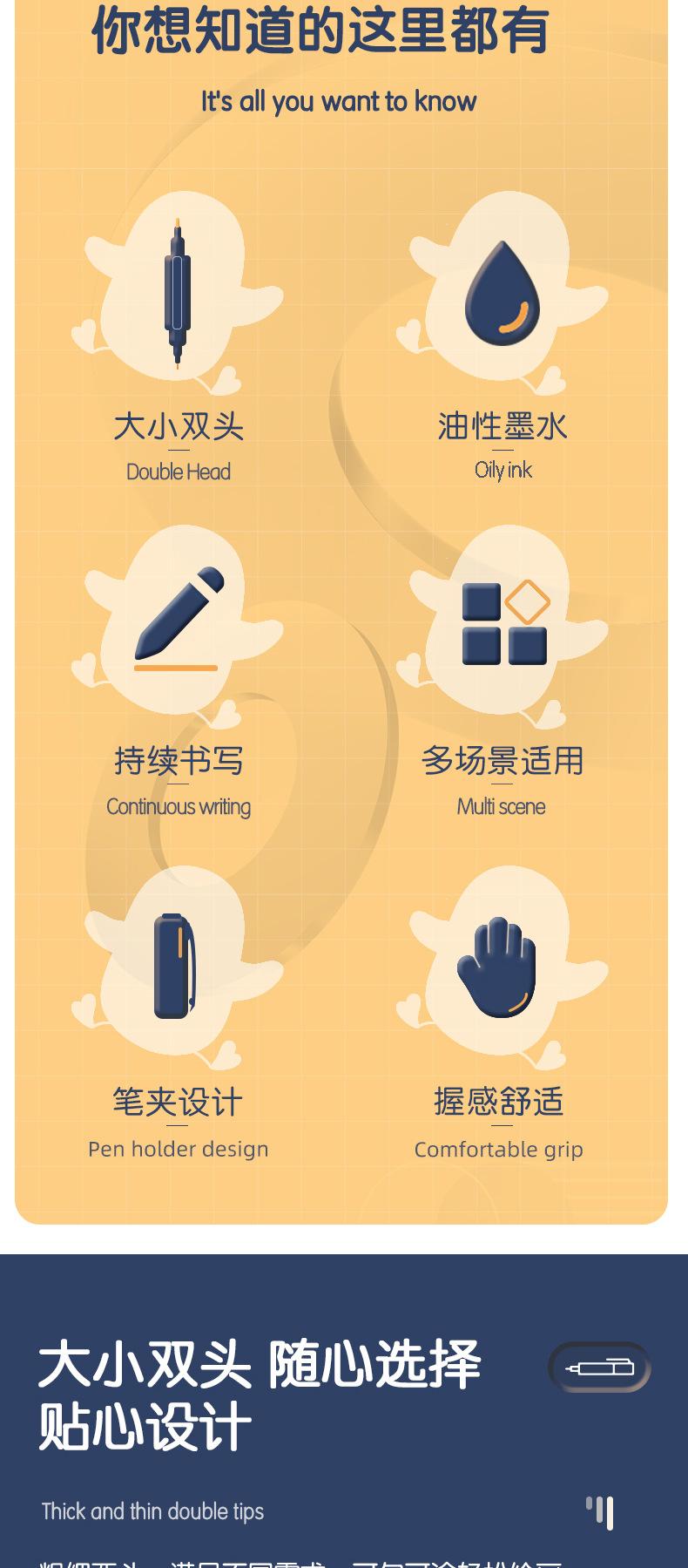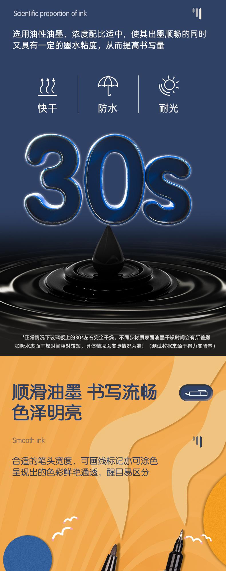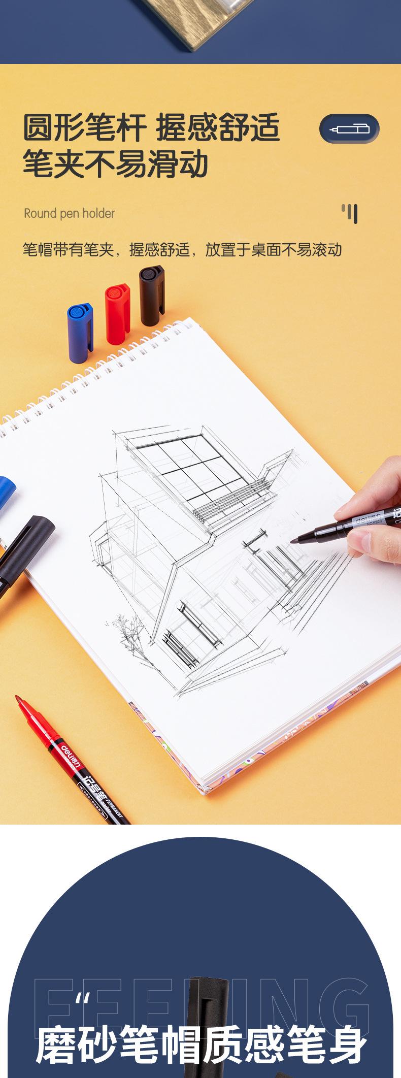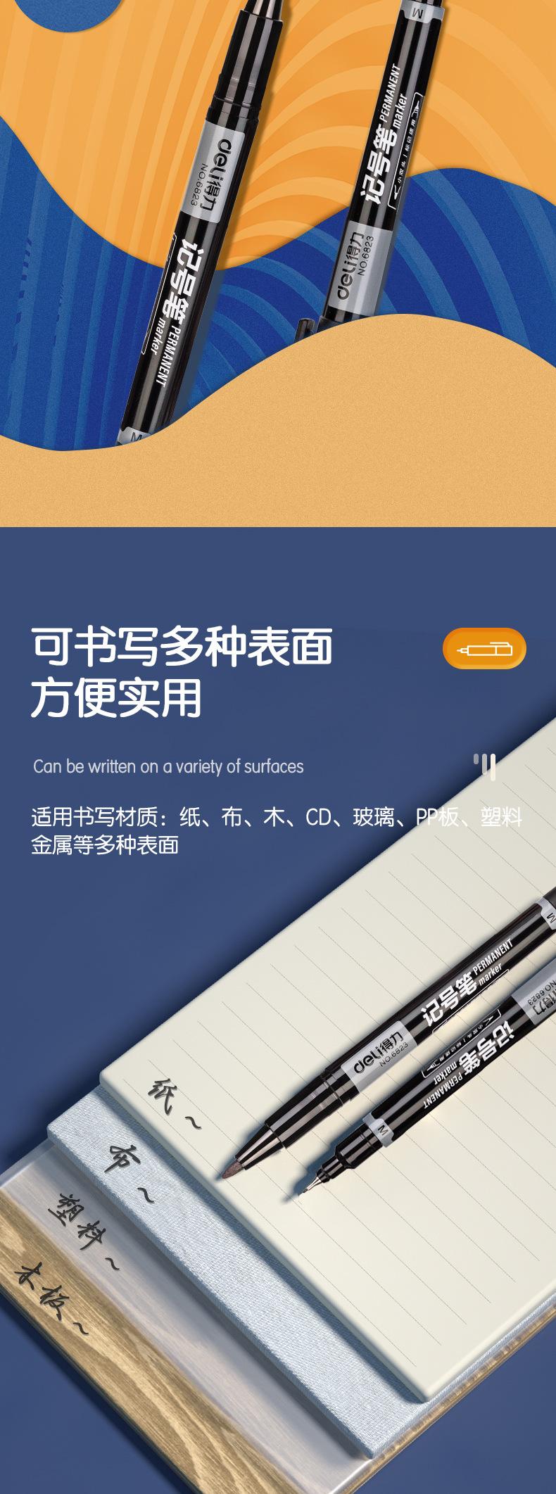 Pluma de gancho Deli a base de agua negra roja punta fina arte para estudiantes niños papelería especial marcador aceitoso de doble punta