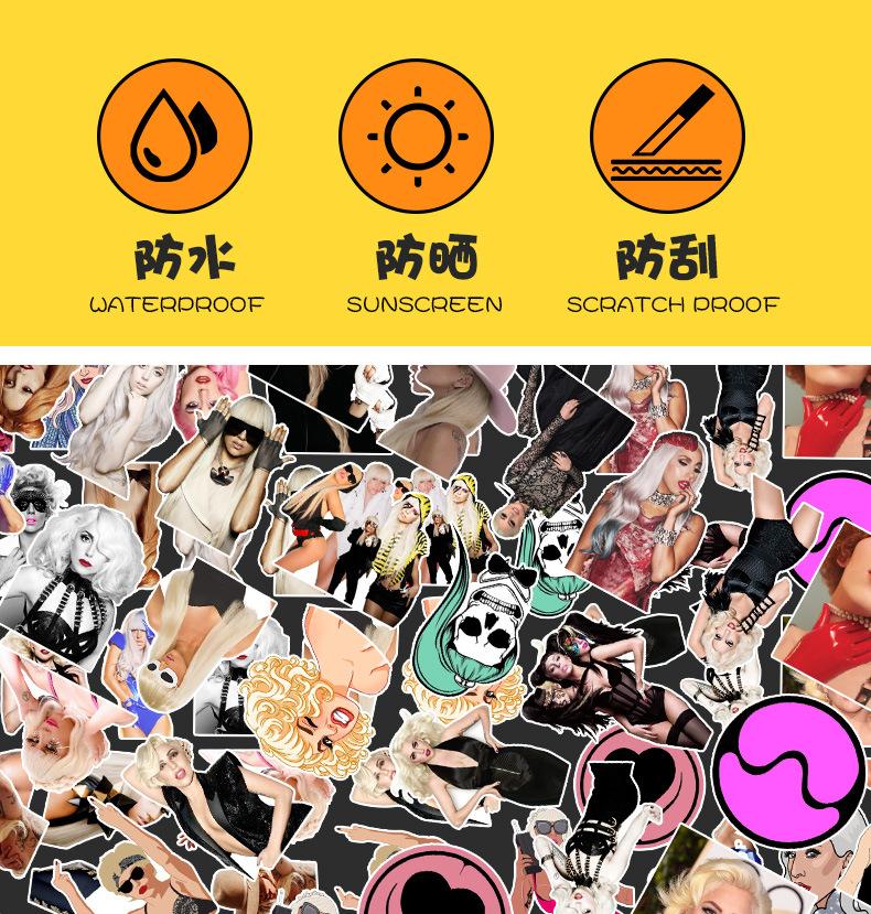 50 Pegatinas de Grafiti de Cantantes Europeos y Americanos para Equipaje, Coches, Refrigeradores, Patinetas y Teléfonos Celulares, Pegatinas Adhesivas Creativas