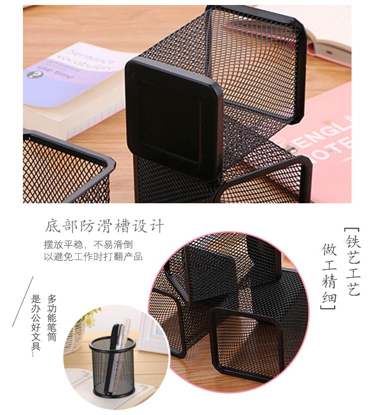 Portalápices de malla metálica creativa para escritorio, almacenamiento de oficina, portalápices de malla de hierro, adornos para estudiantes, acabado de papelería, portalápices al por mayor