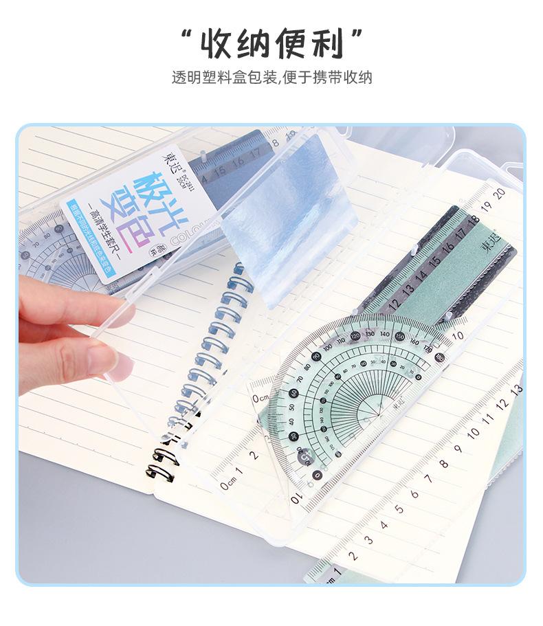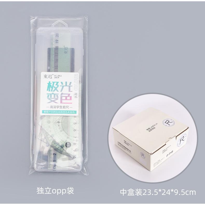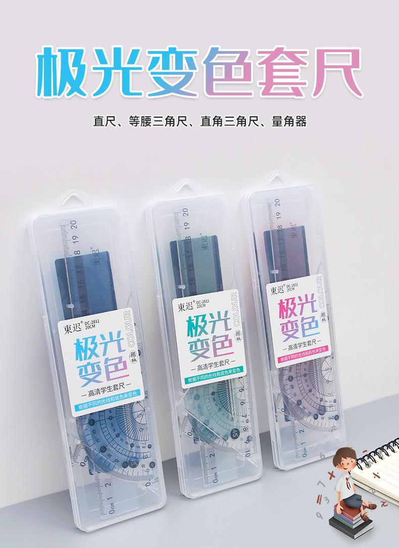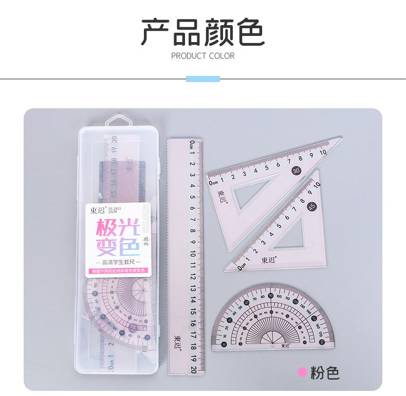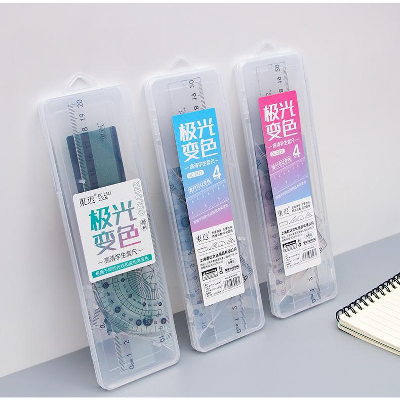 Regla de dibujo Aurora que cambia de color para estudiantes, regla de plástico en caja, regla triangular, regla de aprendizaje, papelería