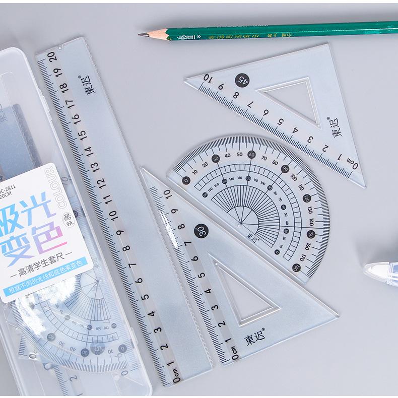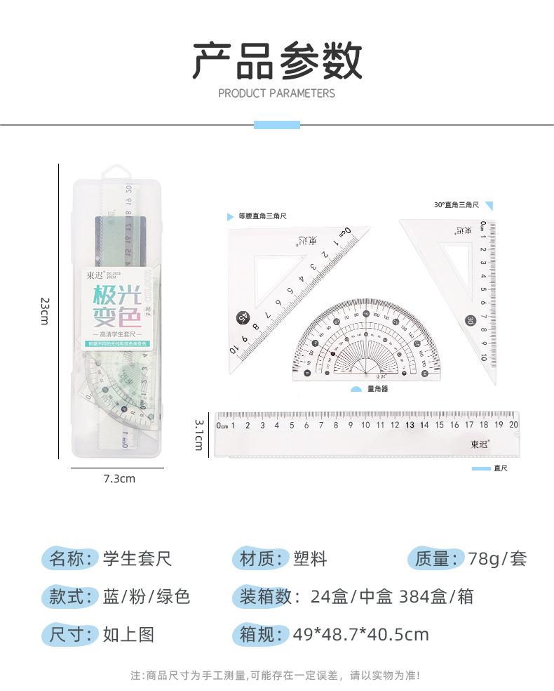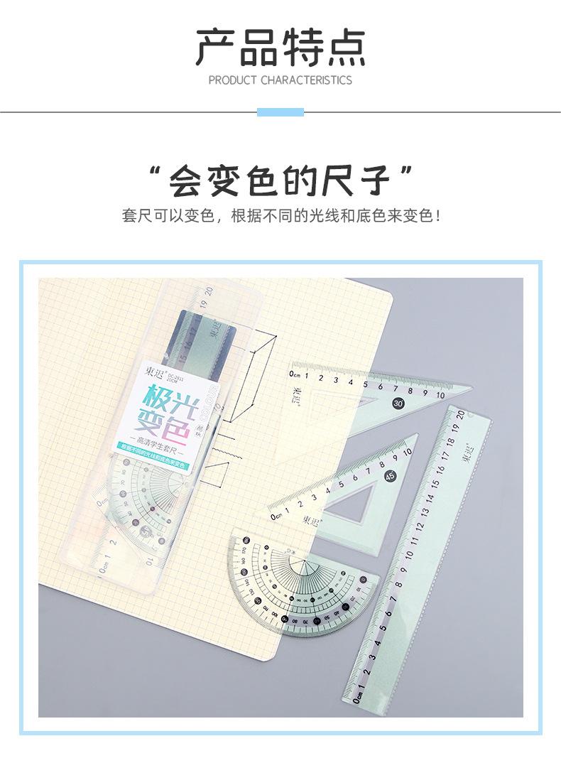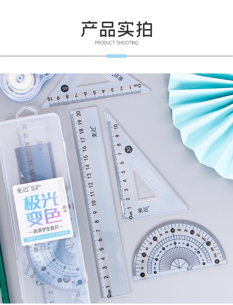 Regla de dibujo Aurora que cambia de color para estudiantes, regla de plástico en caja, regla triangular, regla de aprendizaje, papelería