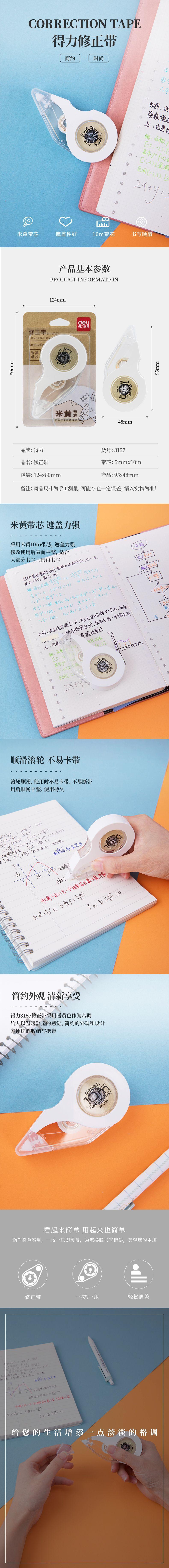 Cinta Correctora Deli 8157m Amarilla Cinta Correctora Gran Capacidad 10m Cinta Correctora para Estudiantes Cinta Correctora al por Mayor
