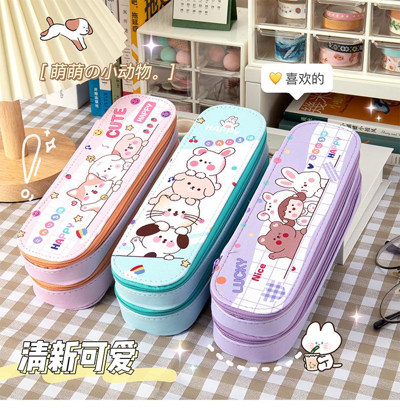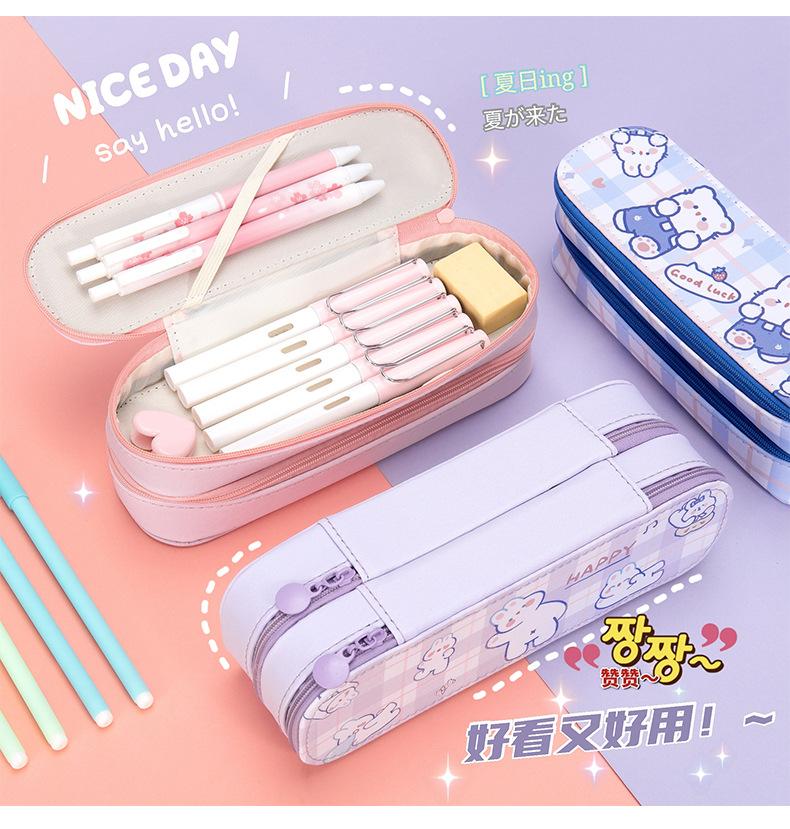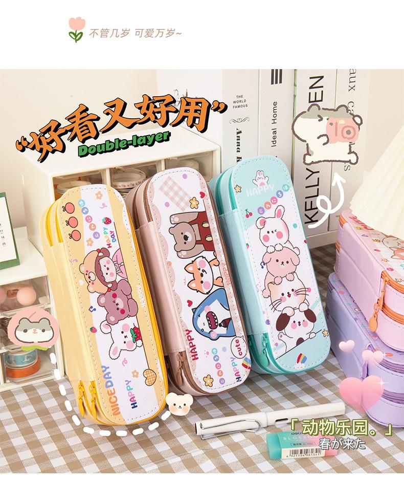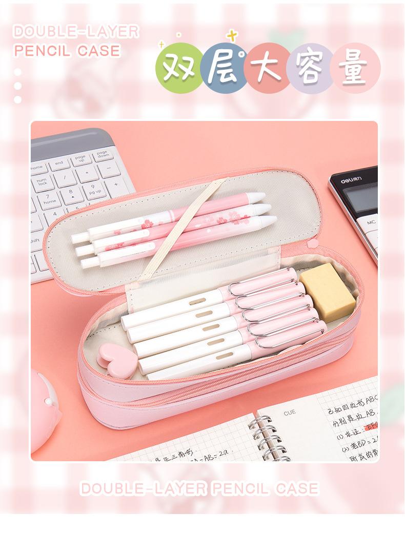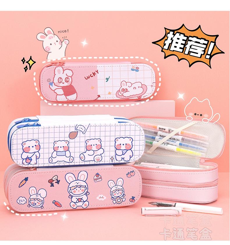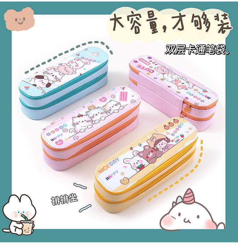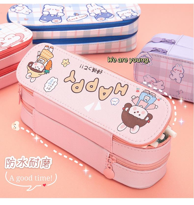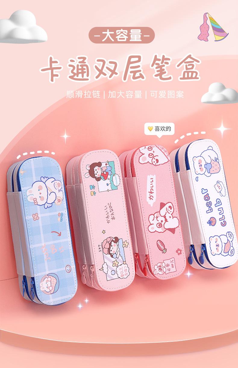Estuche de lápices de gran valor, creativo, de lona para estudiantes, de gran capacidad, bonito y multifuncional, de doble capa, venta al por mayor