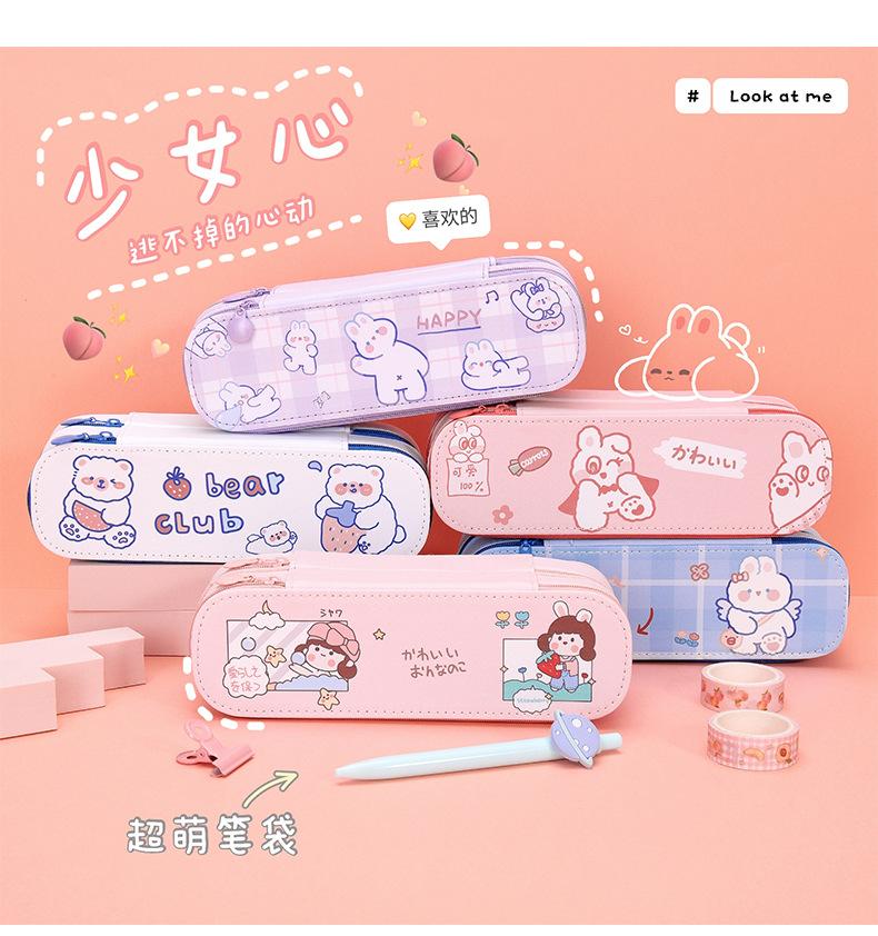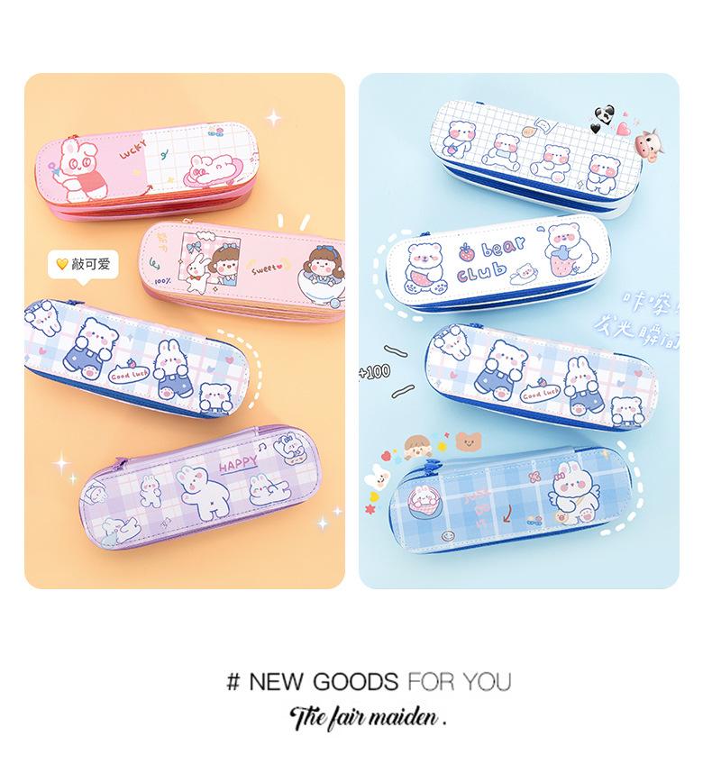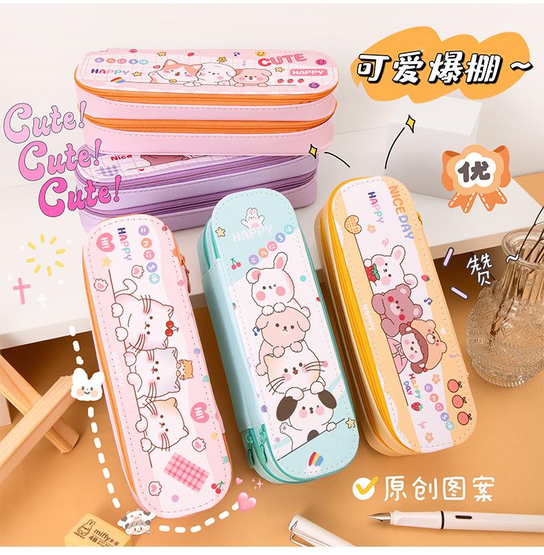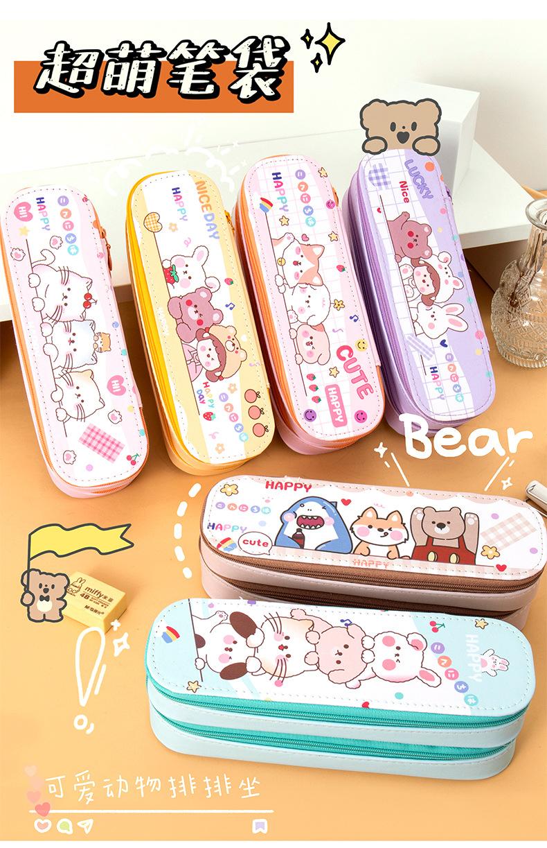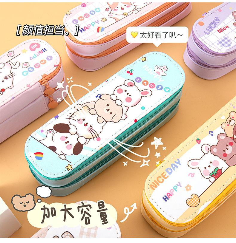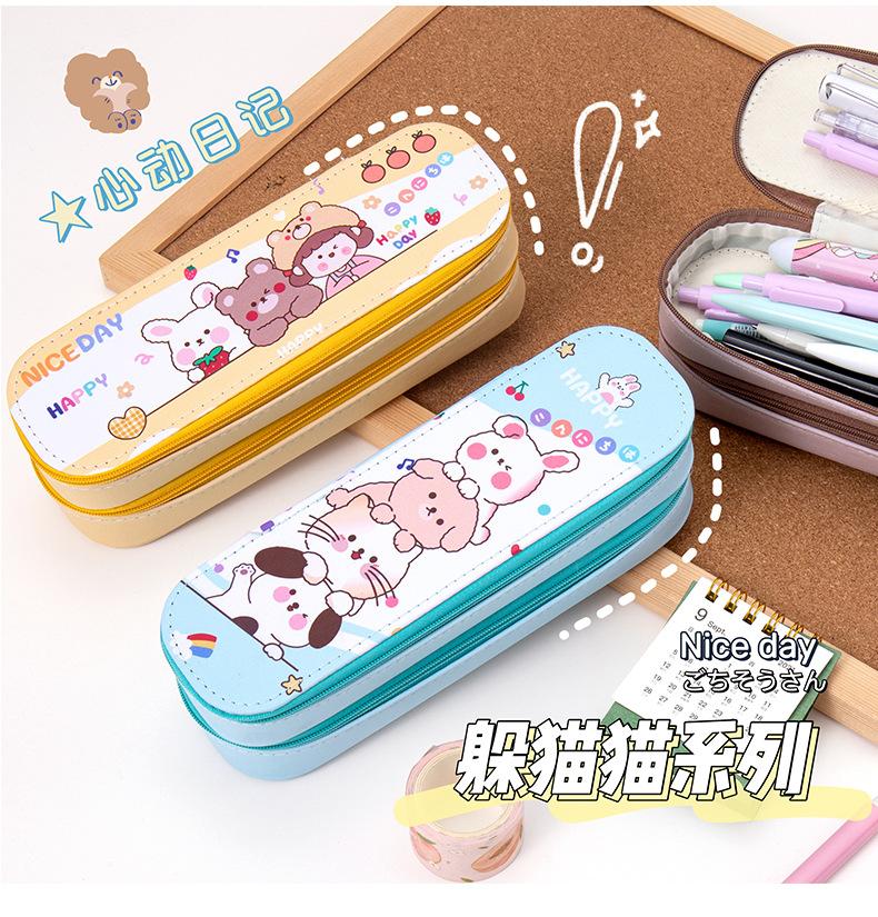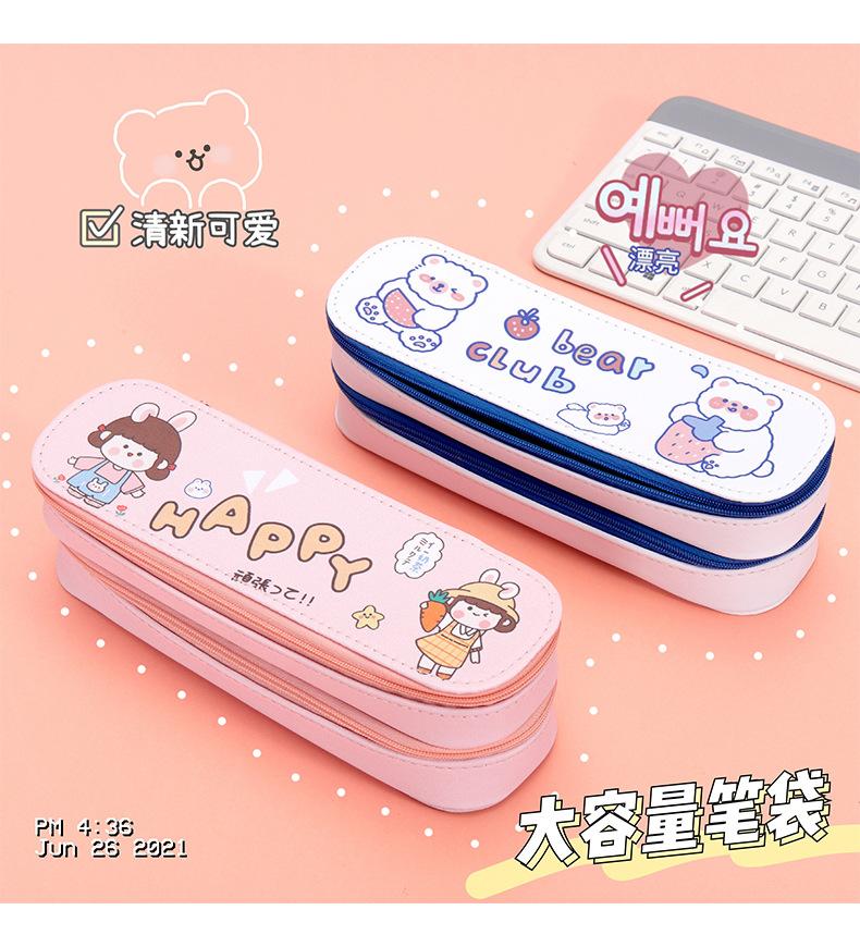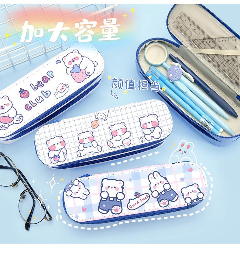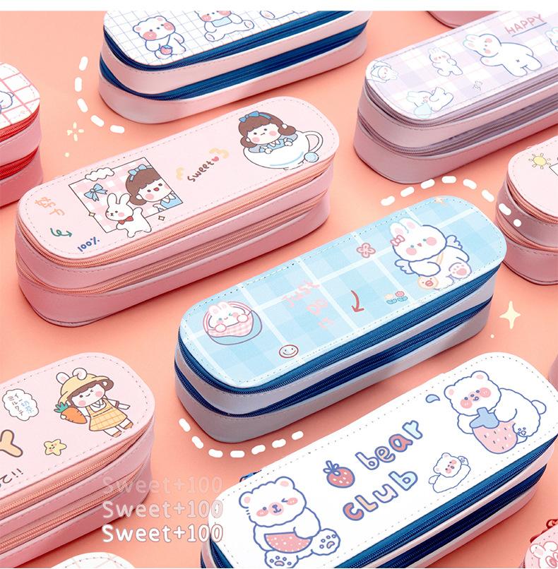 Estuche de lápices de gran valor, creativo, de lona para estudiantes, de gran capacidad, bonito y multifuncional, de doble capa, venta al por mayor