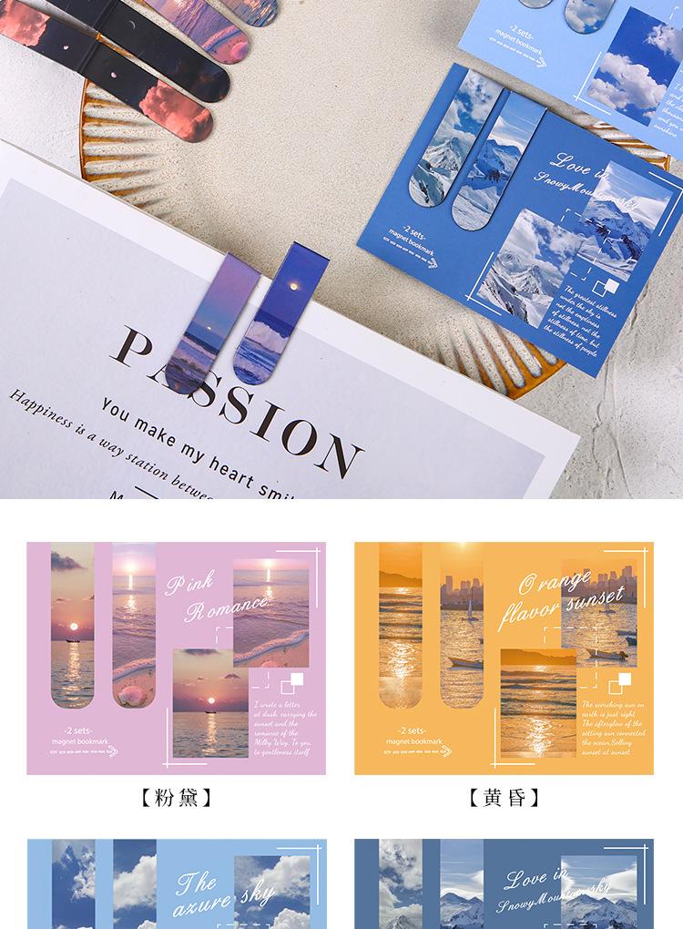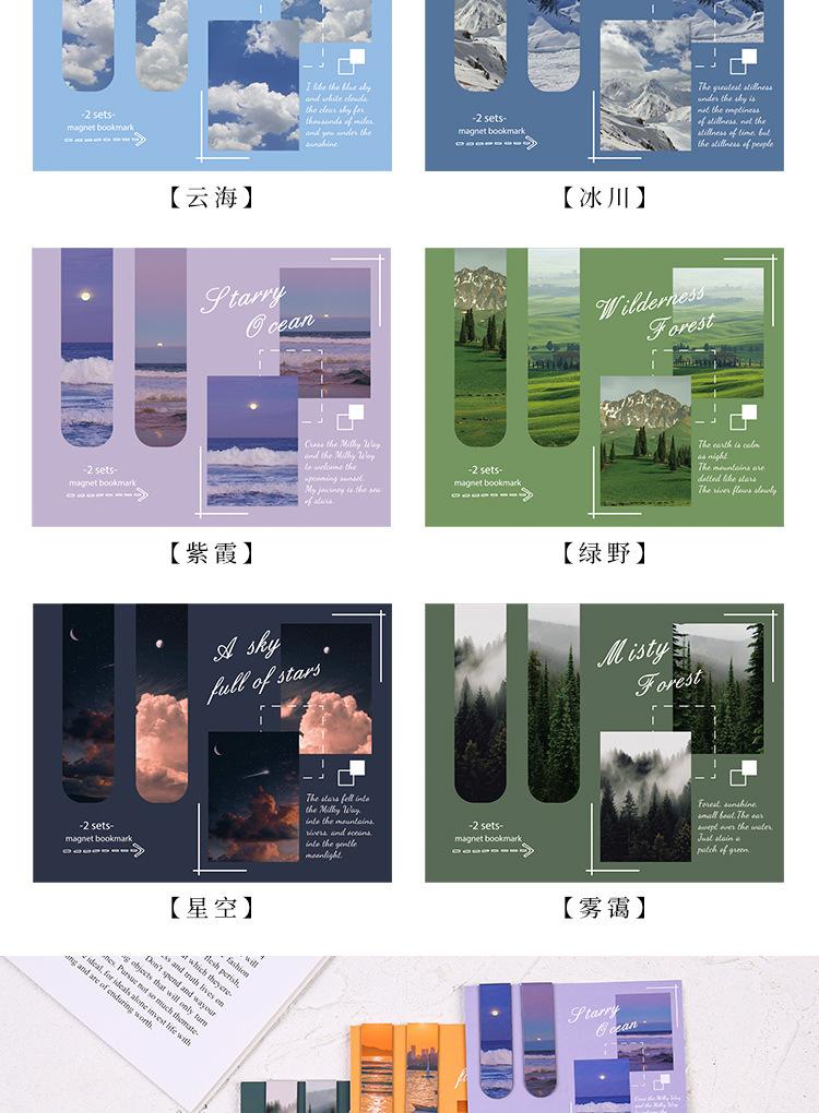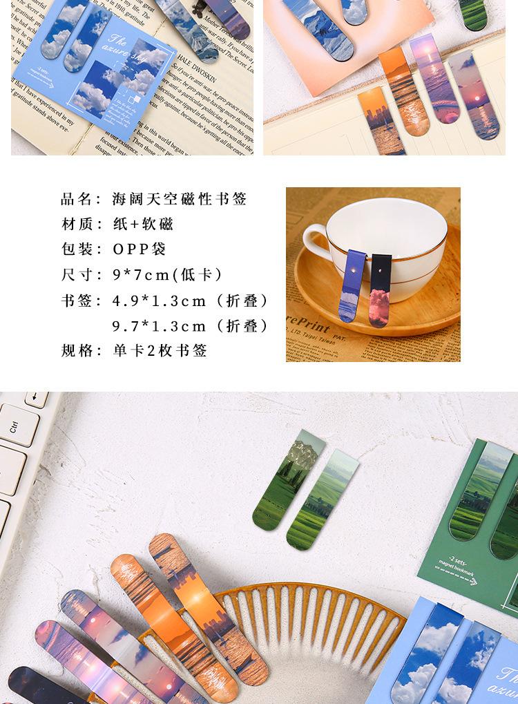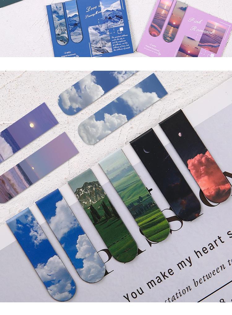 Marcador magnético creativo, marcador magnético, soporte para libros para estudiantes, paisajes, nubes, simple, literario, norte, página de libro, magnético, atraído