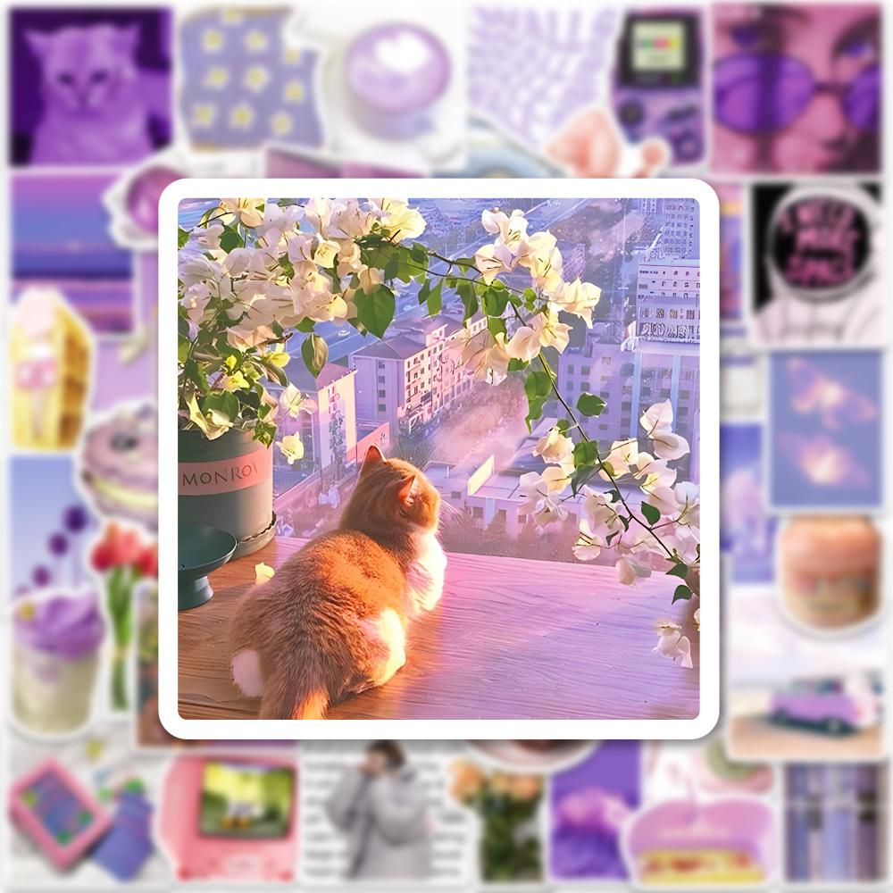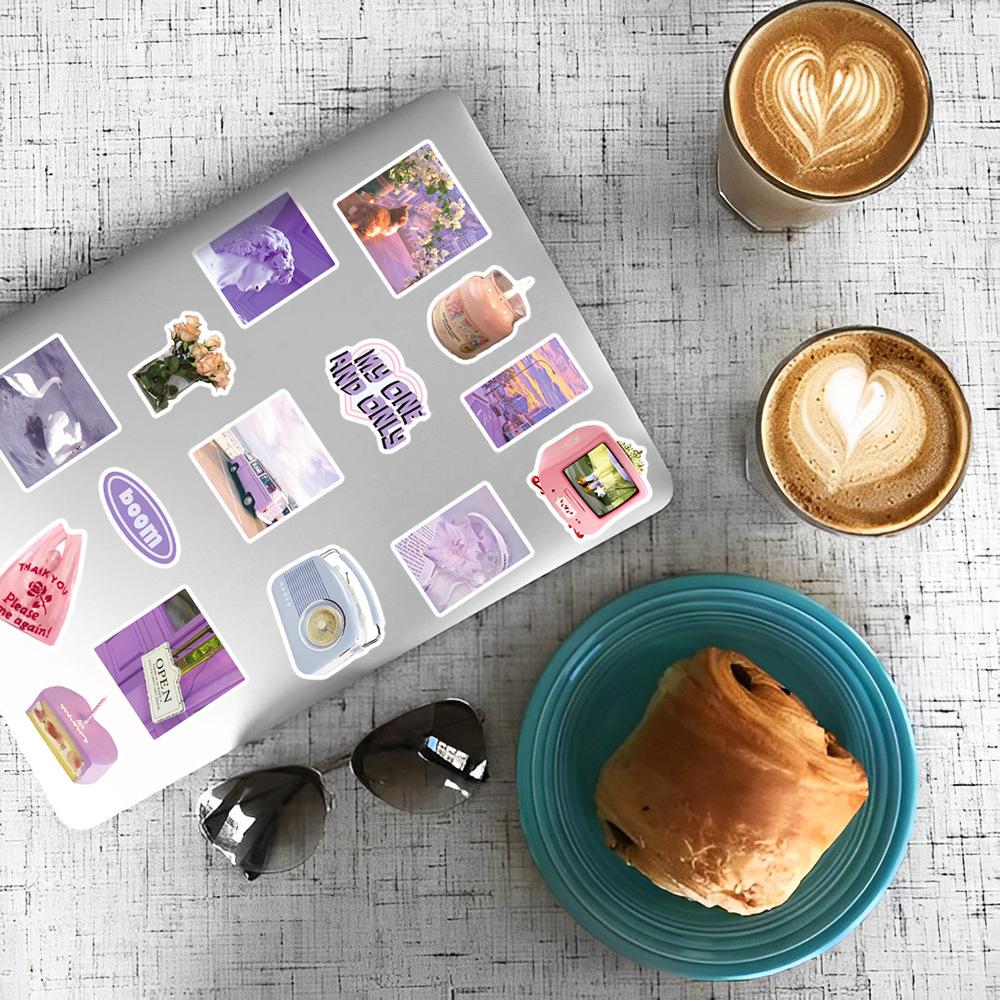 50 pegatinas moradas de estilo fresco para diario, cuaderno, patineta, taza de agua, pegatinas decorativas impermeables.