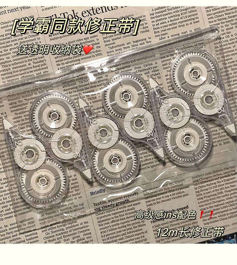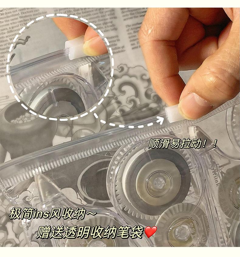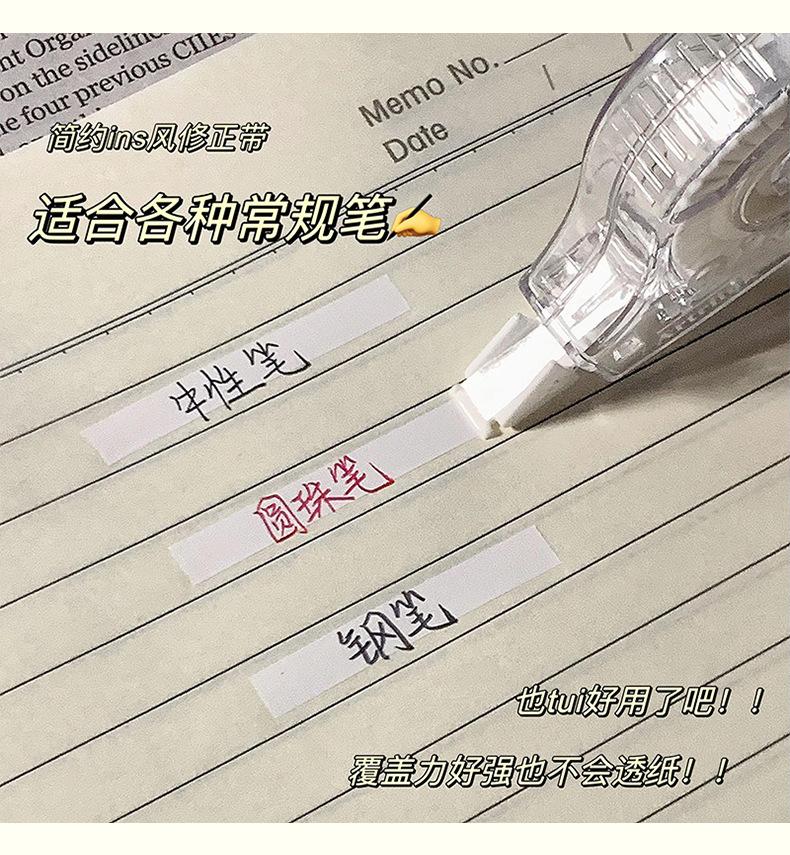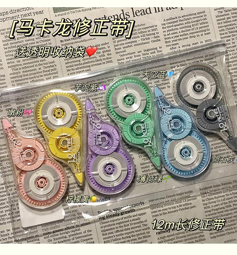 Cinta correctora de gran capacidad y asequible, de alto valor de color, estilo simple, cinta correctora portátil de 12 metros, venta al por mayor