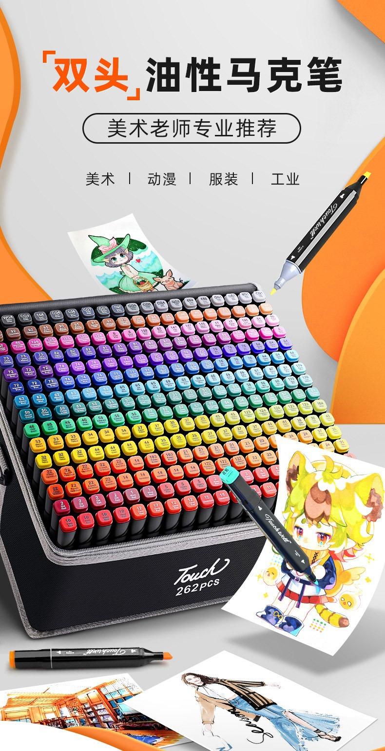 Juego de rotuladores táctiles para estudiantes de arte, con tinta a base de aceite, de doble cabezal, 60 colores y 80 acuarelas para niños.