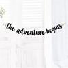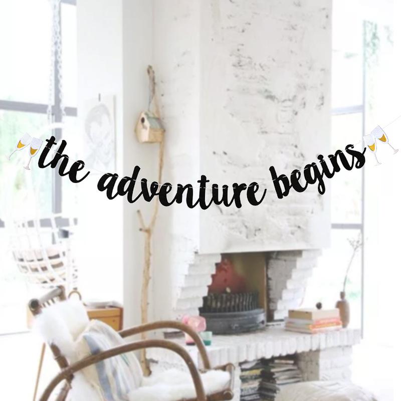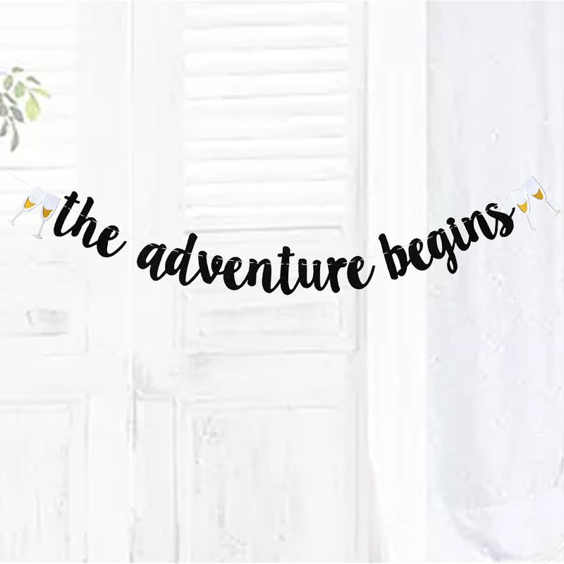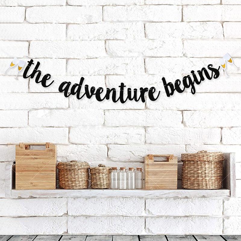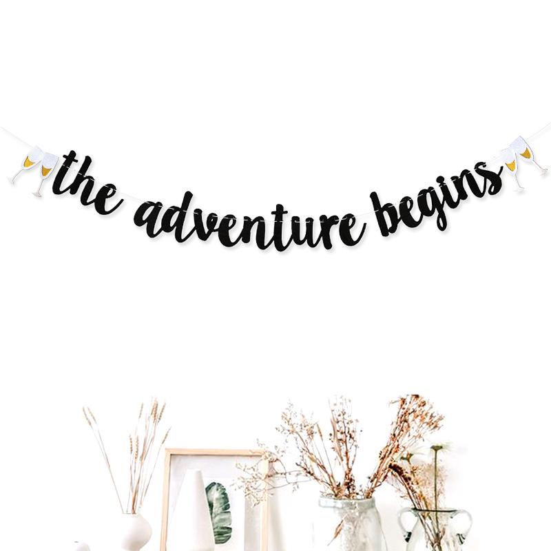 Copa de vino con banderín para fiesta de boda de campamento al aire libre la aventura comienza brillo pegatina de pared para el hogar decoración colgante