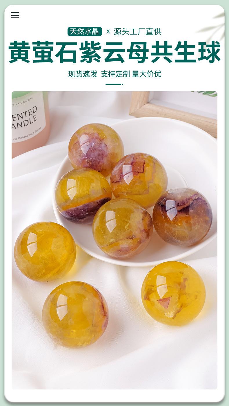 Compra Adornos de bola de simbiosis de mica púrpura y fluorita amarilla natural, piedra de cristal pulida, bola de Feng Shui, adornos de bola de matriz de siete estrellas, venta al por mayor al por mayor en Joom.pro