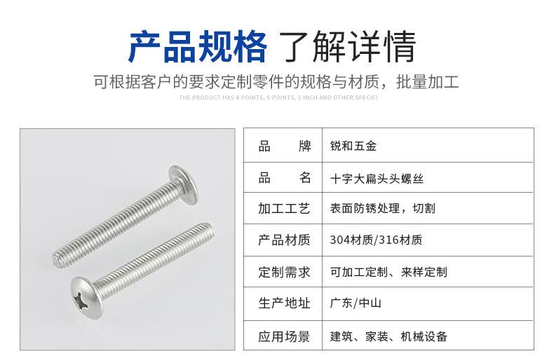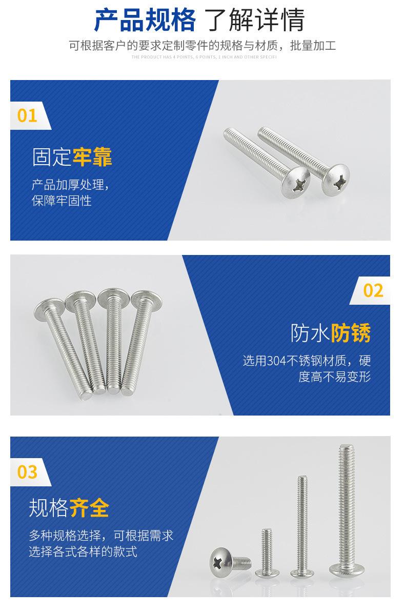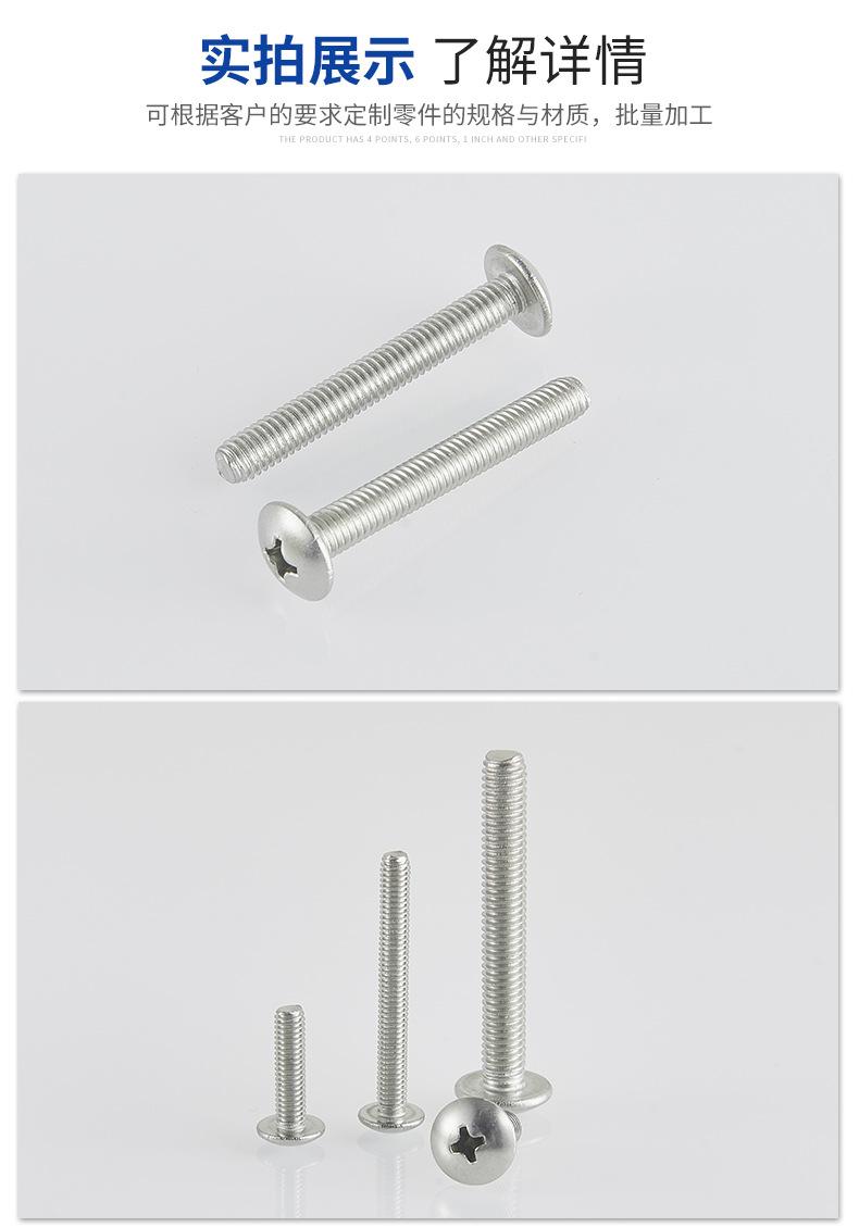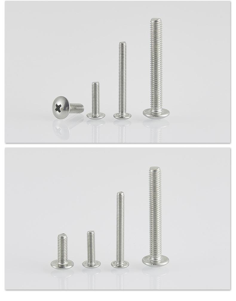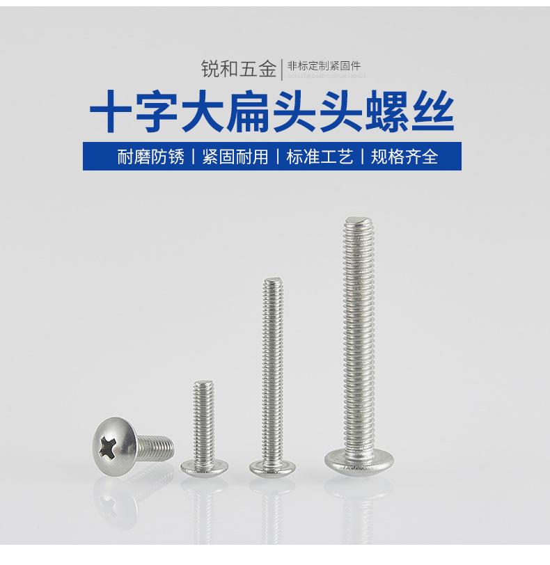 Tornillo de cabeza plana grande en cruz de acero inoxidable 304, perno de cabeza redonda con cabeza de hongo 201, tornillo de cabeza de paraguas de alambre para máquina TM, venta al por mayor