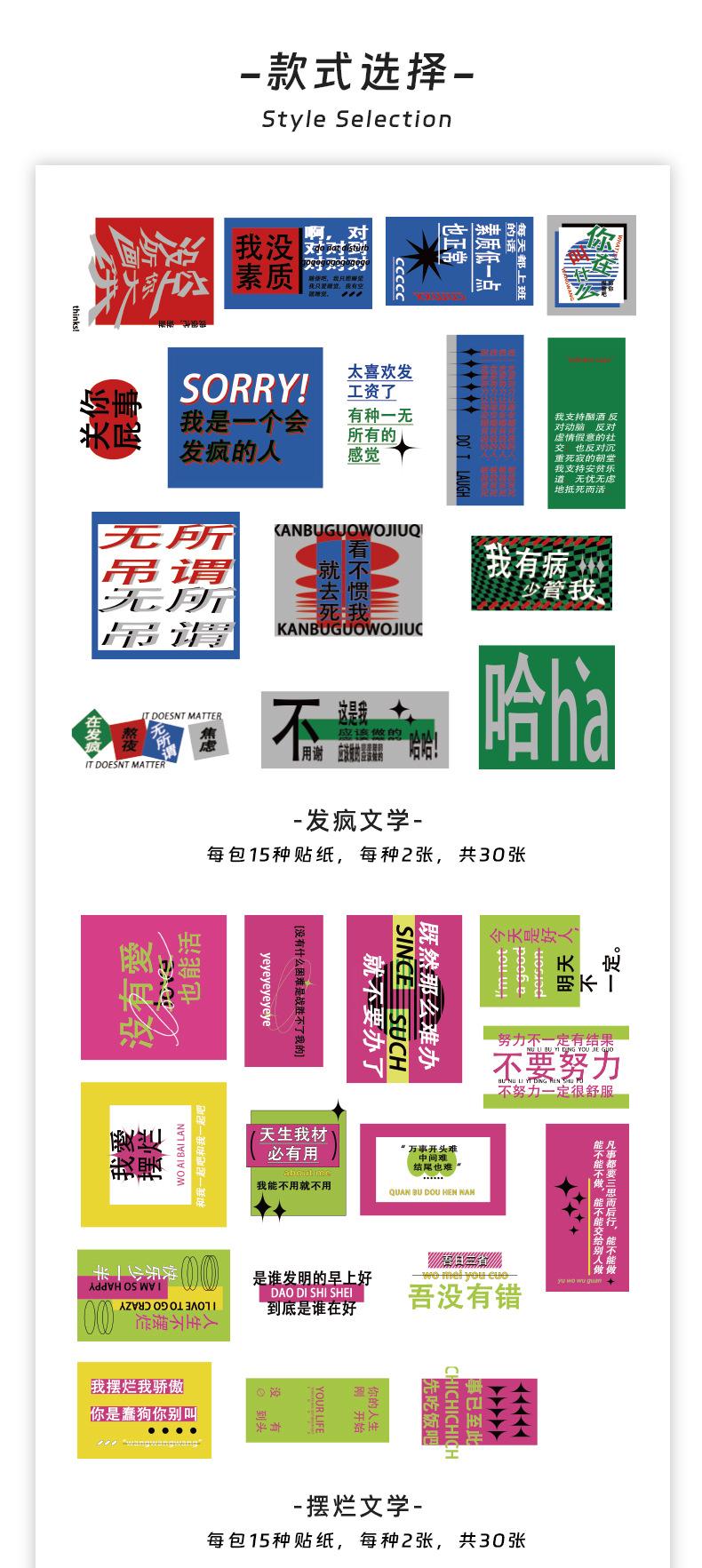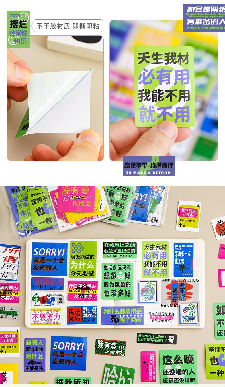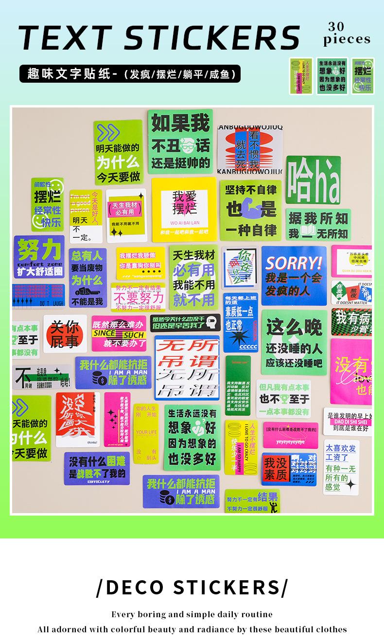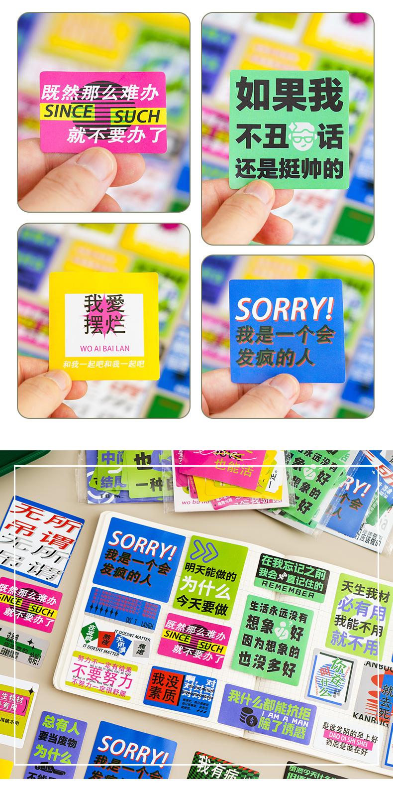 Paquete de pegatinas de texto divertido, diario literario creativo sin sentido, pegatinas de bricolaje, pegatinas decorativas para teléfono móvil, pegatinas para taza de agua