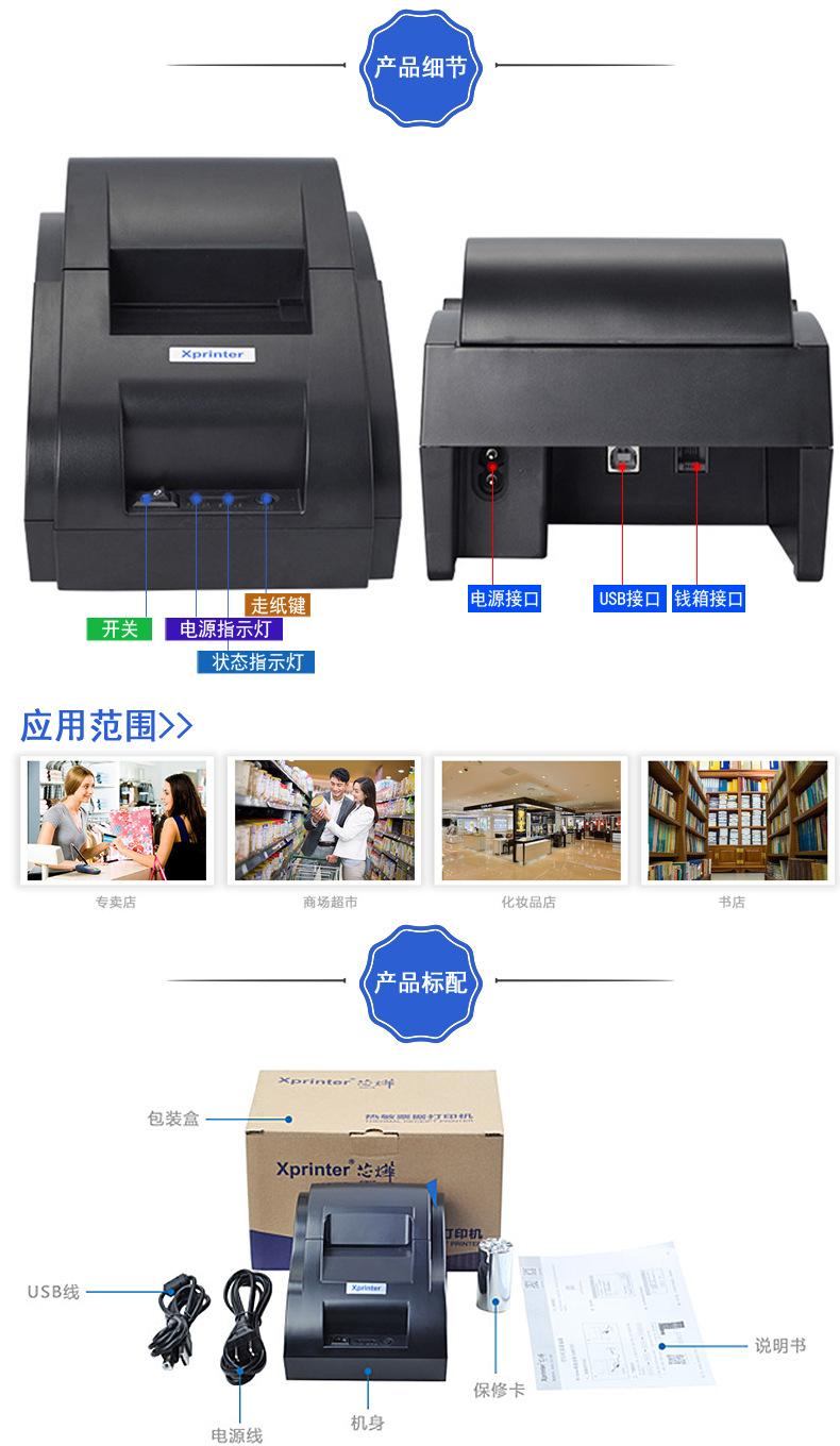 Impresora Térmica de Recibos Xprinter Xinye Xp-58Iih USB Versión para Computadora Impresora de 58 mm