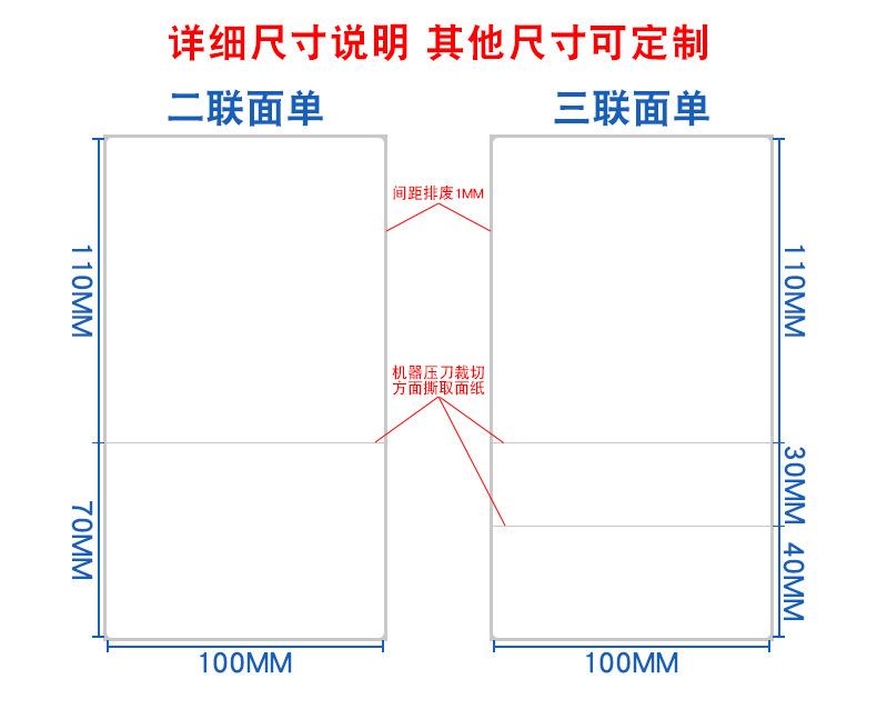 Papel individual en blanco de 100 x 180 mm, papel individual plegado, papel térmico exprés, papel de impresión adhesivo de tres capas transfronterizo
