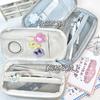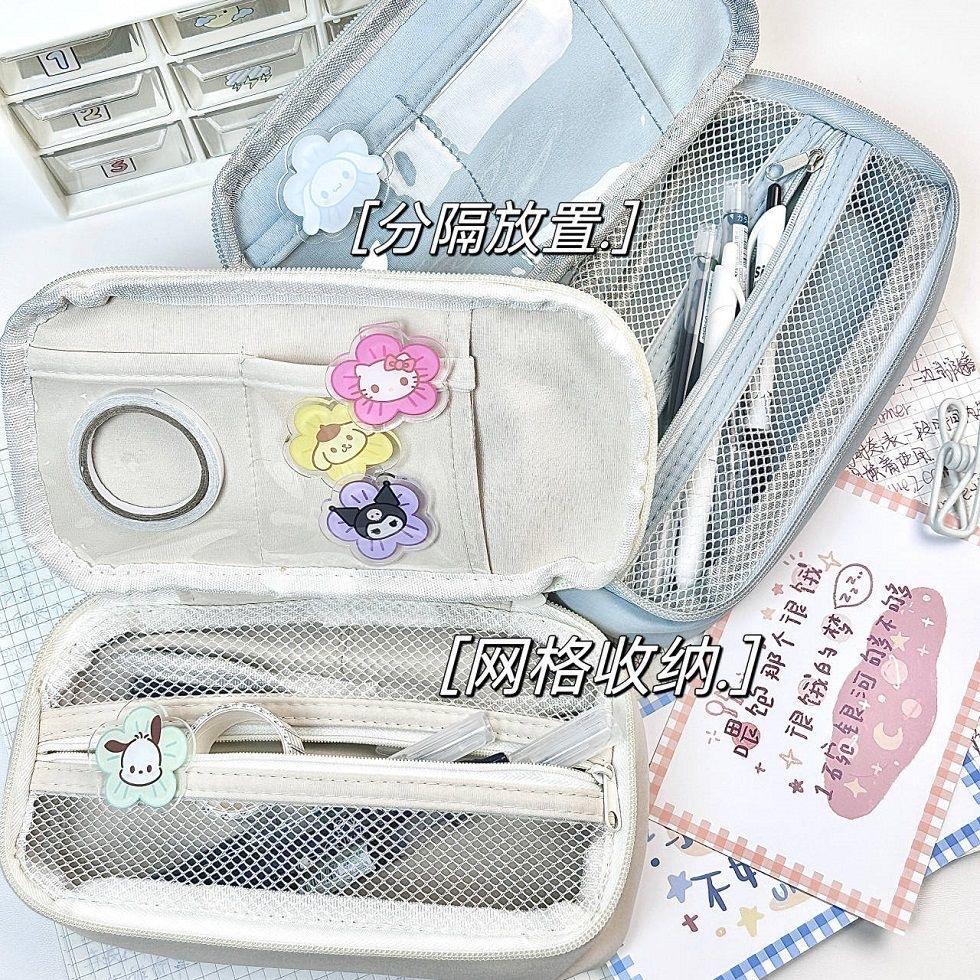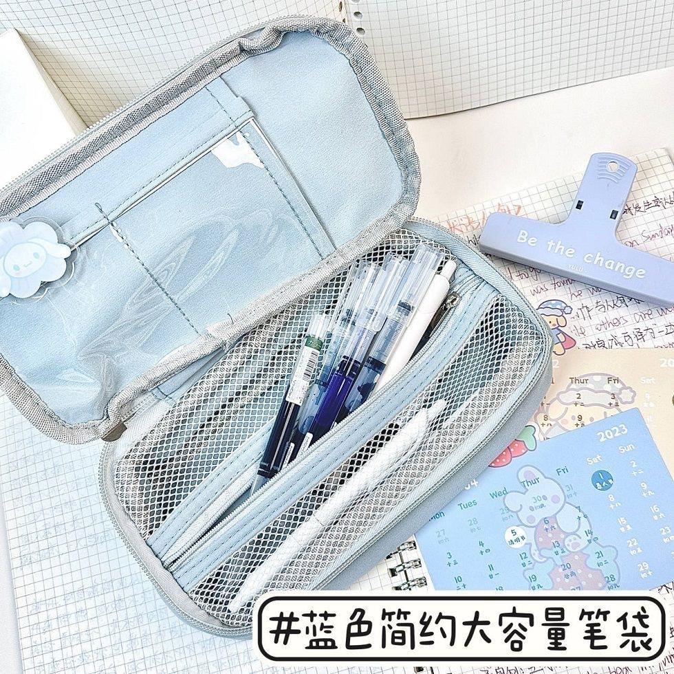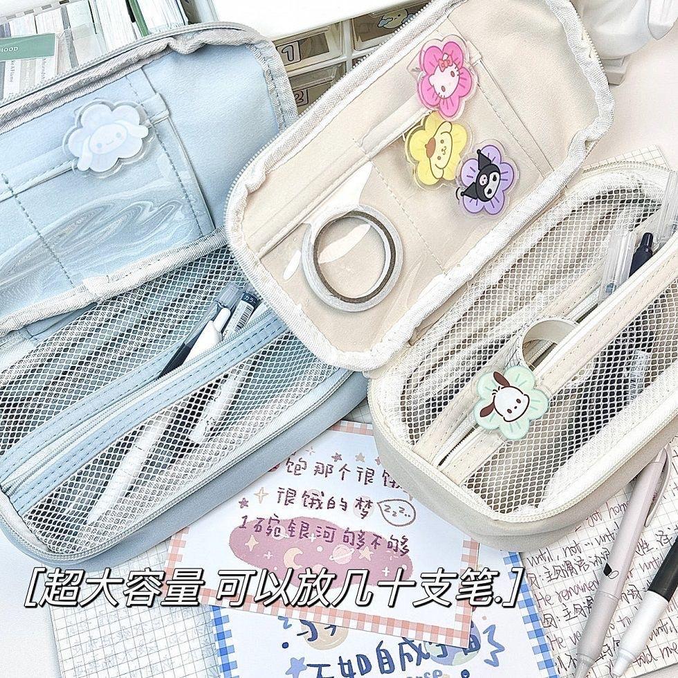 Blue Slant Flap Mesh Pencil Case, Beige Slant Flap Mesh Pencil Case