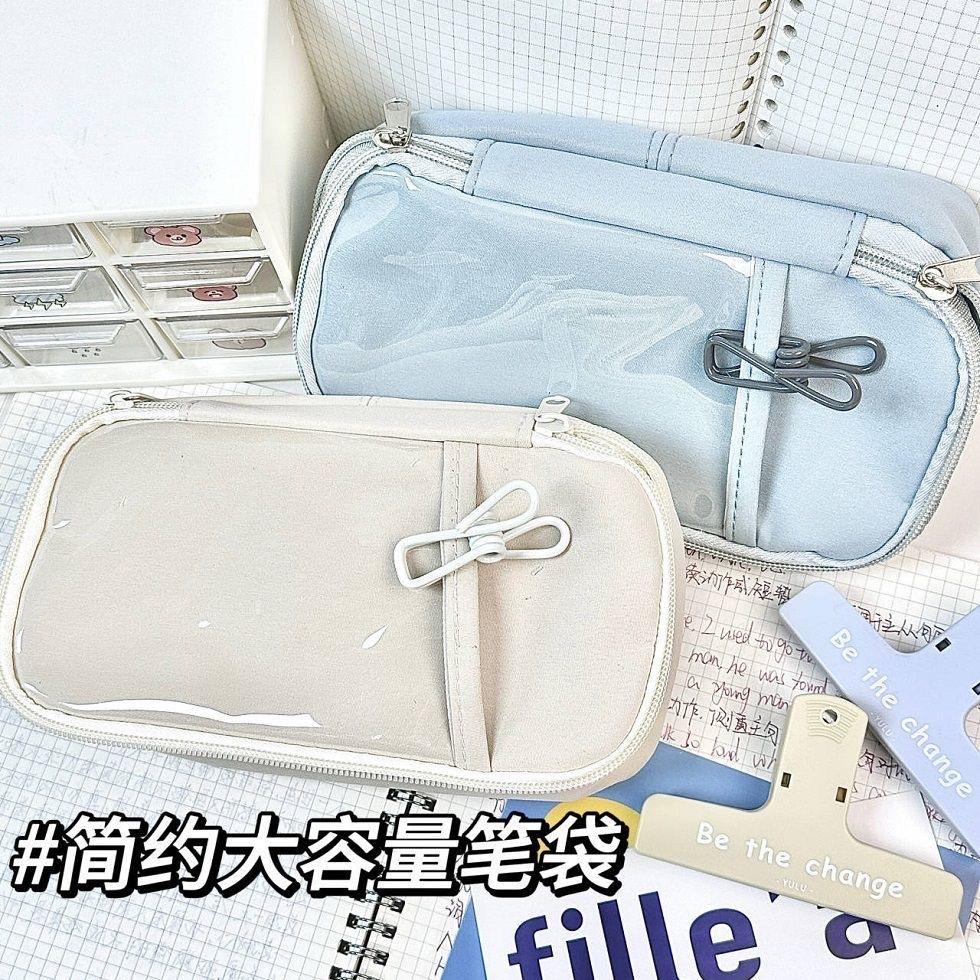 Estuche para lápices sencillo de gran capacidad con tapa abatible de color sólido, nicho, caja de papelería de gran capacidad y alto valor, bolsa de almacenamiento de papelería
