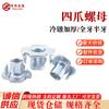 Tuerca de cuatro garras de acero inoxidable 304 tuerca para muebles fondo plano agujero pasante con garra M4-M10T tuerca DIN1624