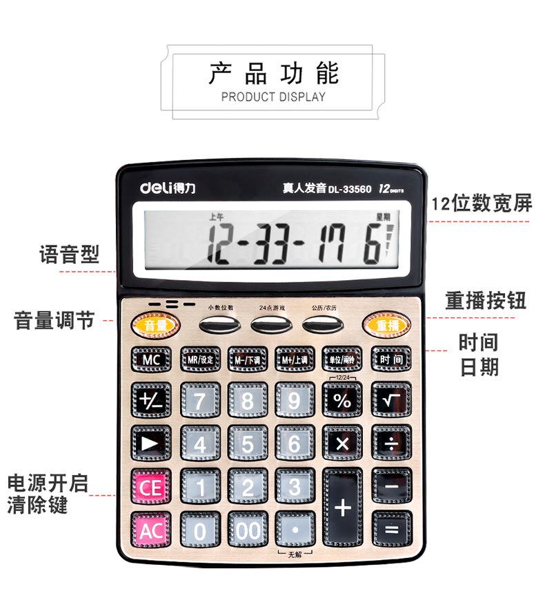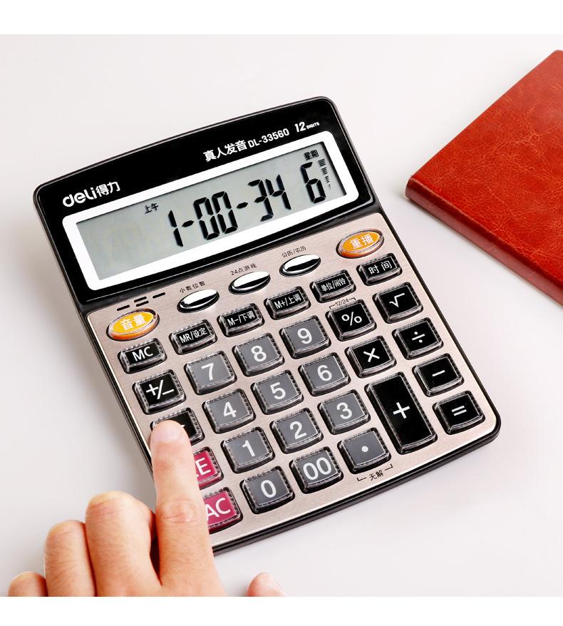 Calculadora Deli Voz Pronunciación Humana Pantalla Grande Computadora Calculadora Financiera de 12 Dígitos Botón Grande Sonido